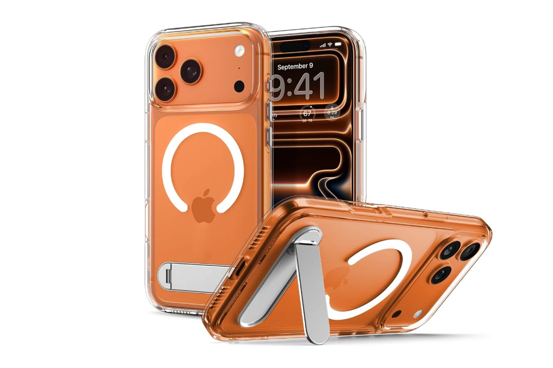 Safeguard your new iPhone 17 Pro with this case featuring Air Cushion Technology in all corners for drop protection. Its 360° rotating kickstand offers limitless portrait and landscape viewing.