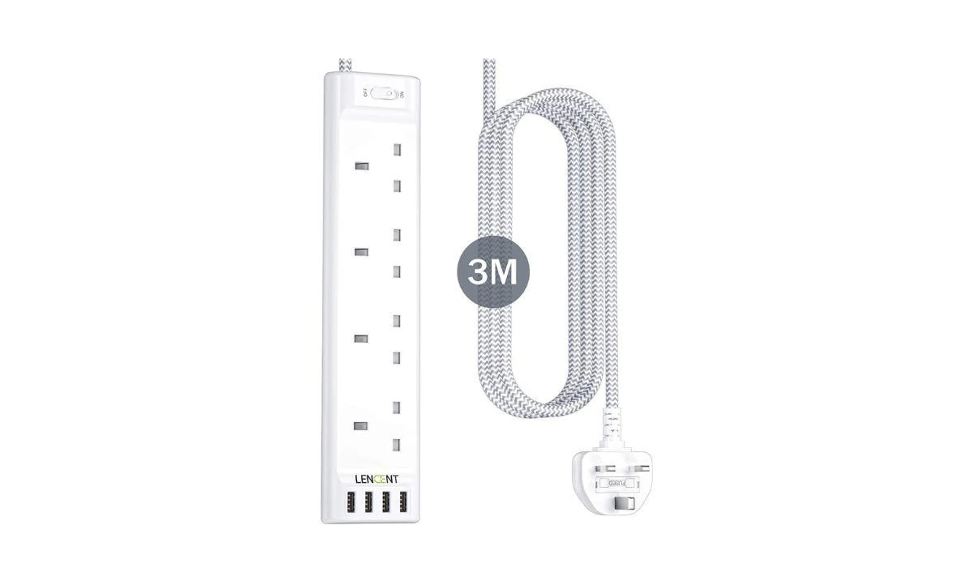 Power strips are a household essential. This particular Lencent extension lead offers 4 sockets and 4 USB ports for simultaneous charging of all your devices, and has a 2-metre braided cord that won’t tangle up.