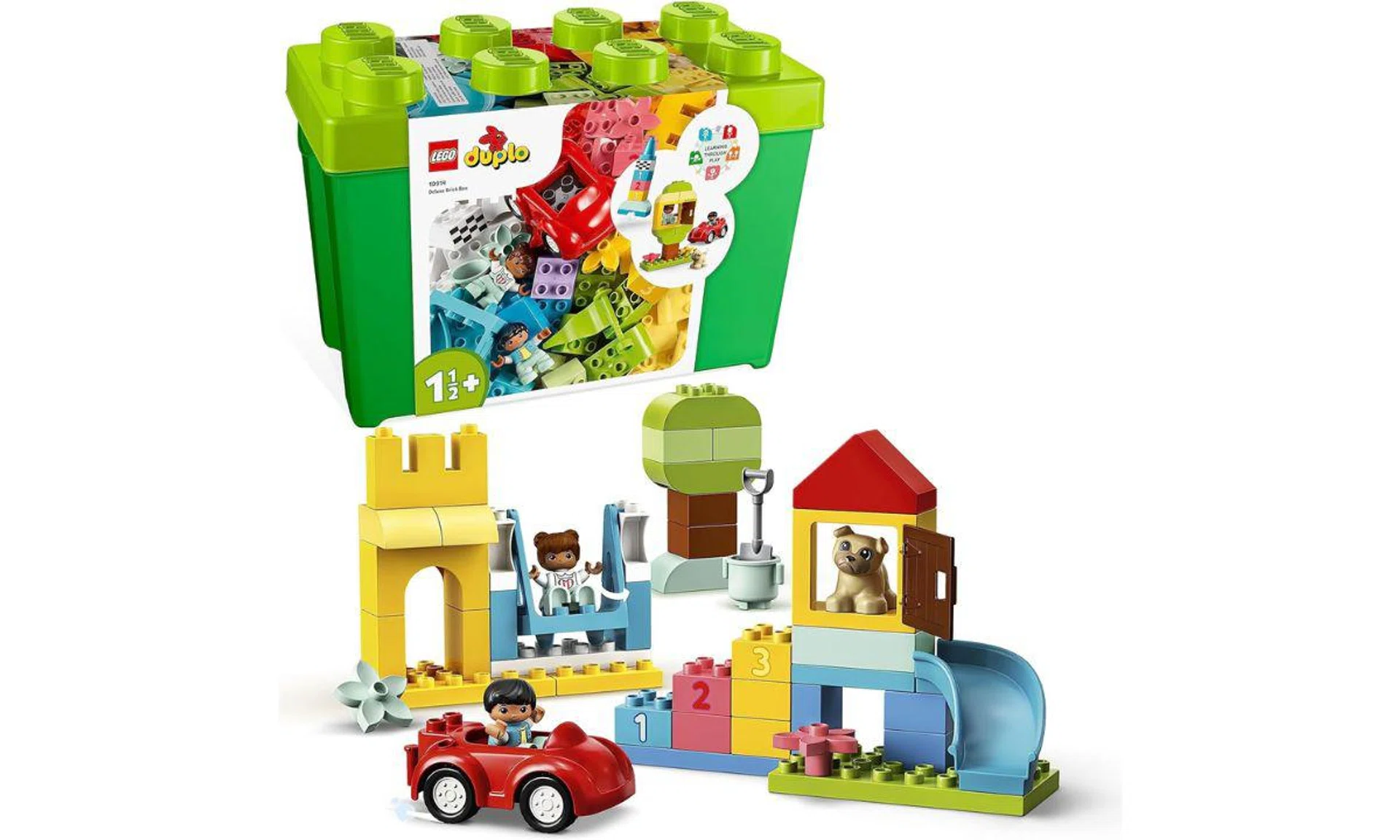 The Deluxe box has 85 toddler-friendly bricks, from fun pieces like a car, windows and numbered 1-2-3 blocks to help with learning to count.