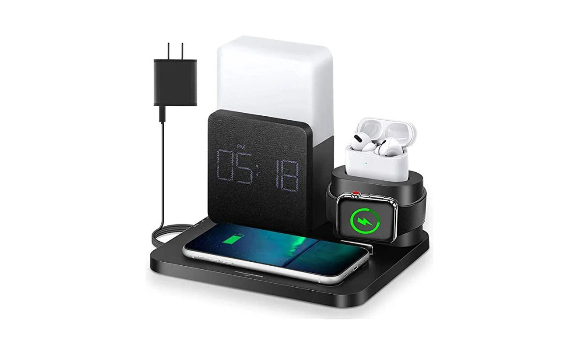 Save space on your nightstand or side table while staying organised with this 3-in-1 Charging Station. A versatile device that streamlines your charging routine, it's compatible with multiple devices, charges quickly, and has a bright and customisable display that doubles as a night light.