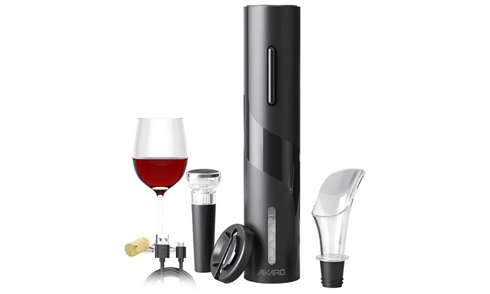 This handy rechargeable wine opener kit can open up to 40 bottles, removing the cork in an impressive 6 seconds. It also comes with an aerator pourer and vacuum stopper.
