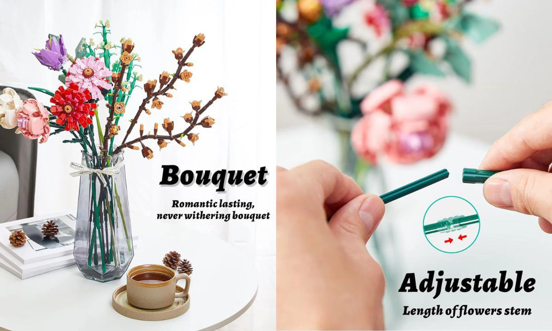 The perfect gift for Christmas, this building set contains 1,237 pieces, has adjustable flower stems and gives you the freedom to arrange the petals and flower shapes to your liking for your own bouquet arrangement.