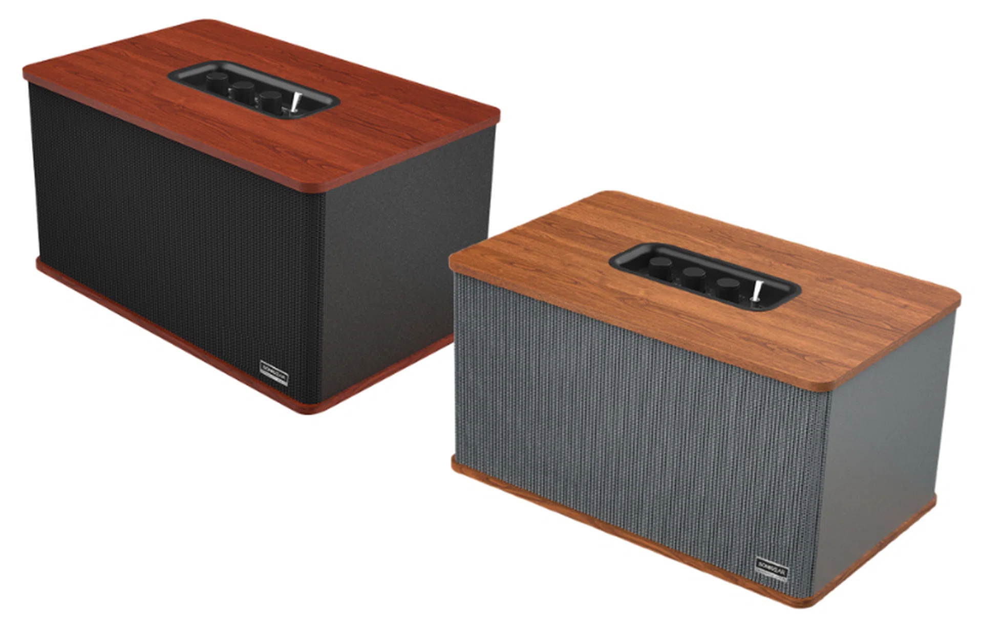 Built from rich mahogany, SonicGear’s home Bluetooth speaker is as aesthetically pleasing as it is functional. Manually set bass and treble levels for the cleanest-sounding tunes.