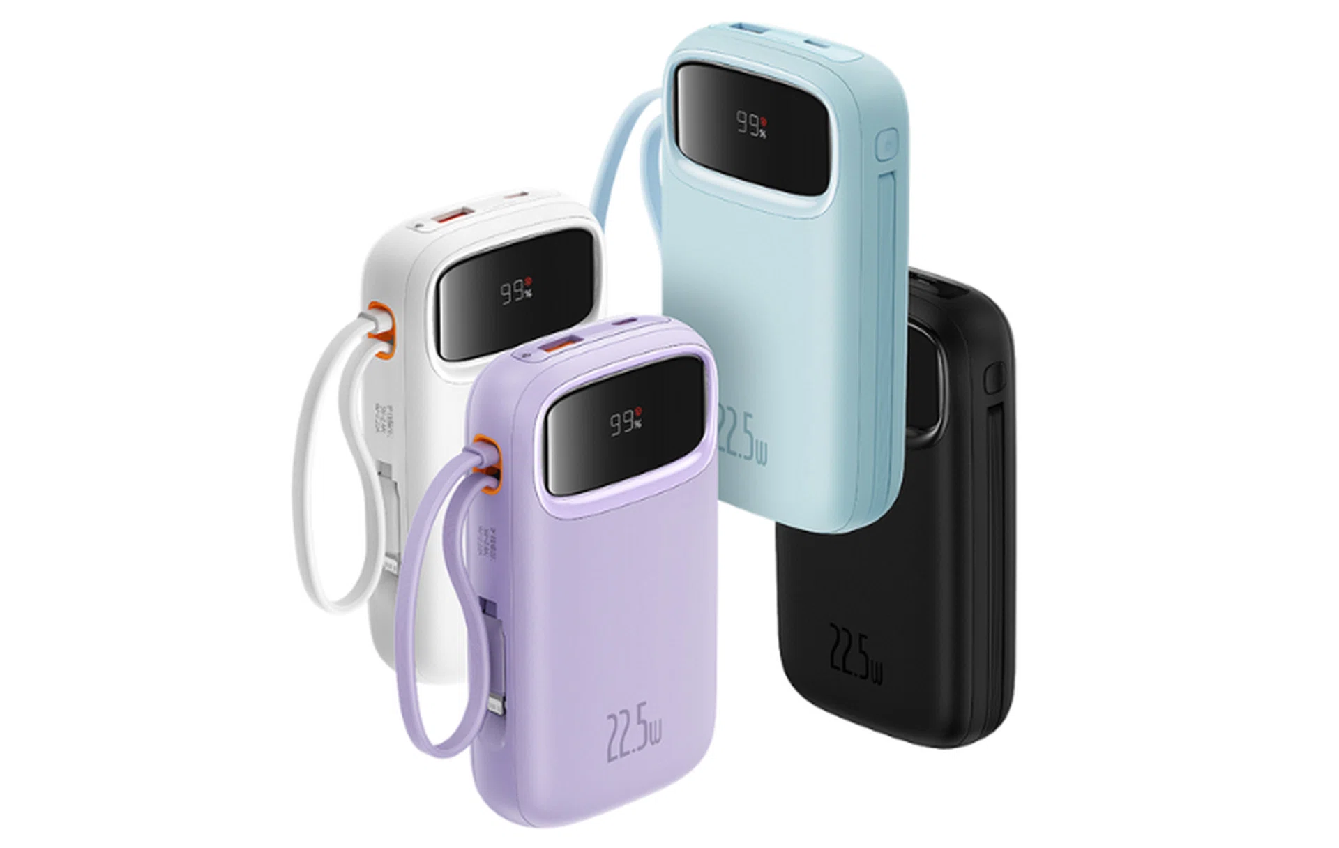 For when you’re on the go, charge multiple devices at once from smartphones to headphones using the heavy-duty Baseus Double Cable Power Bank. The frontal LED screen conveniently displays the battery level while charging.