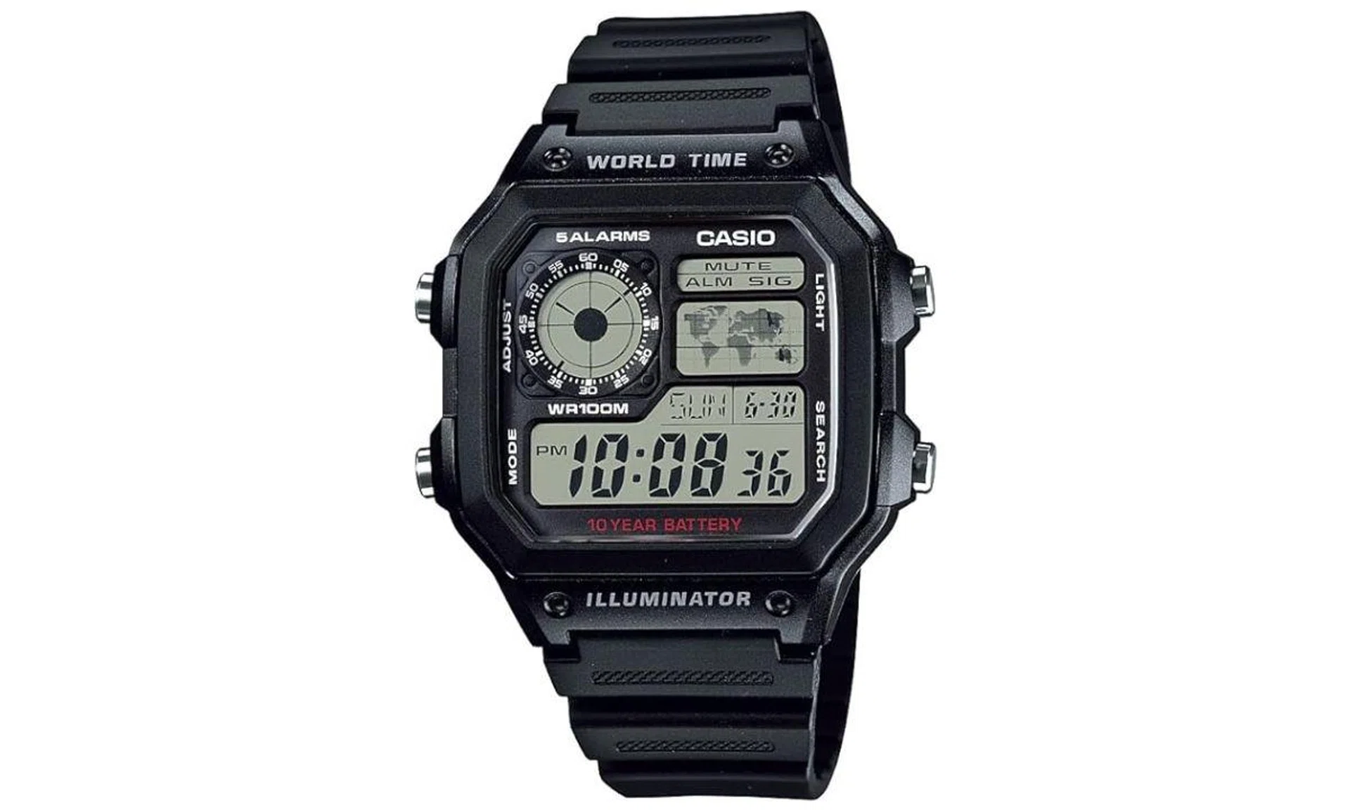 With 100M water resistance, 10-year battery life, and world time for 48 cities, this cool Casio watch works well for daily wear. It’s also got 5 daily alarms and an LED light. With this range of features, it’s a steal not to be missed!