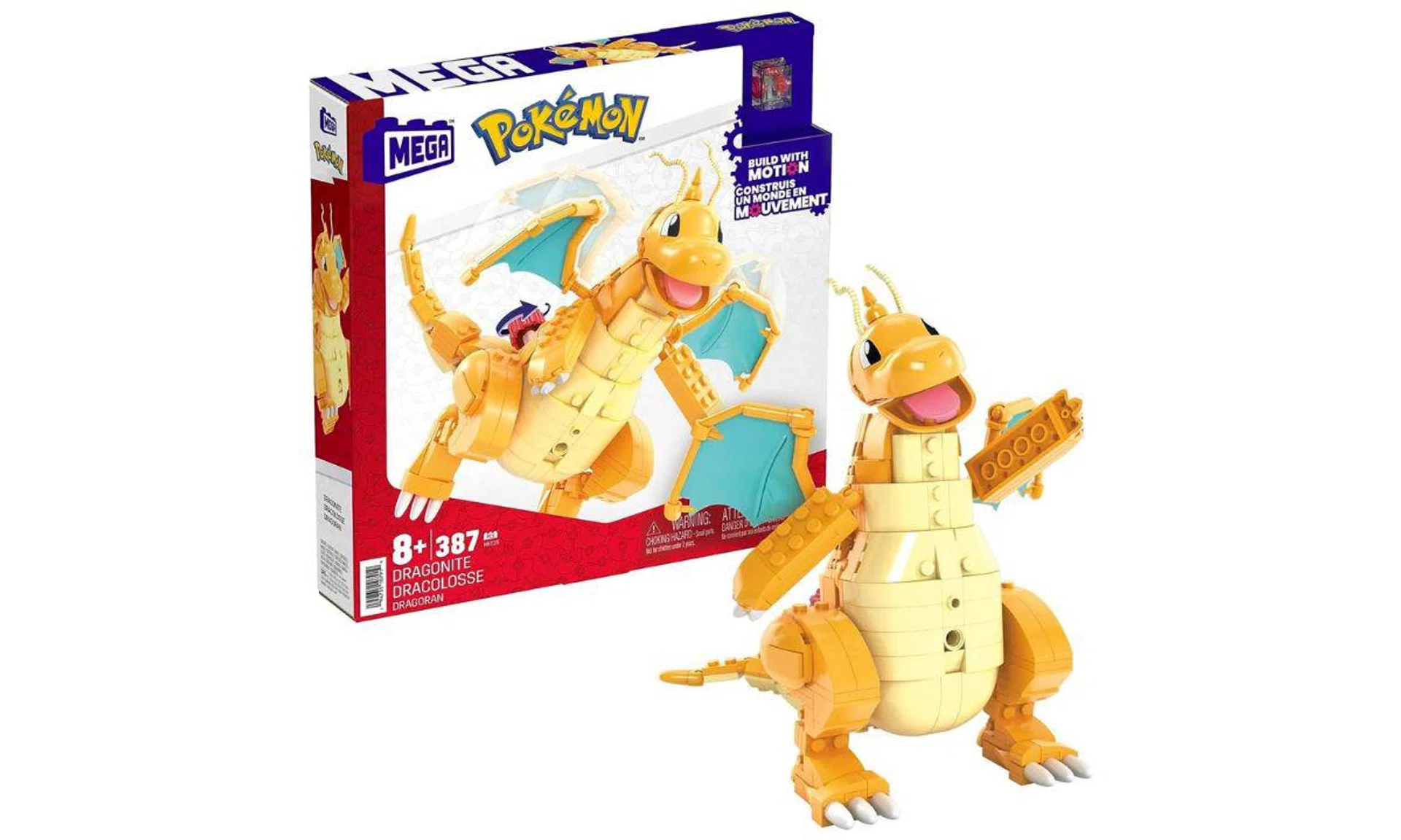 Suitable for ages 8 and over, this 387-piece building set lets you turn a crank to make Dragonite’s wings flap.