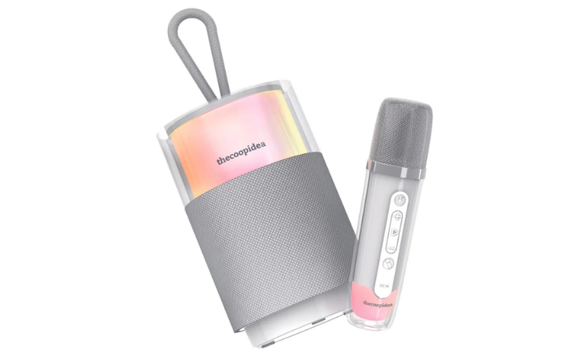 Doubling as a wireless speaker and fun portable mini karaoke speaker set, thecoopidea’s K-POD is compatible with both Android and IOS and showcases ambient RGB lighting too.