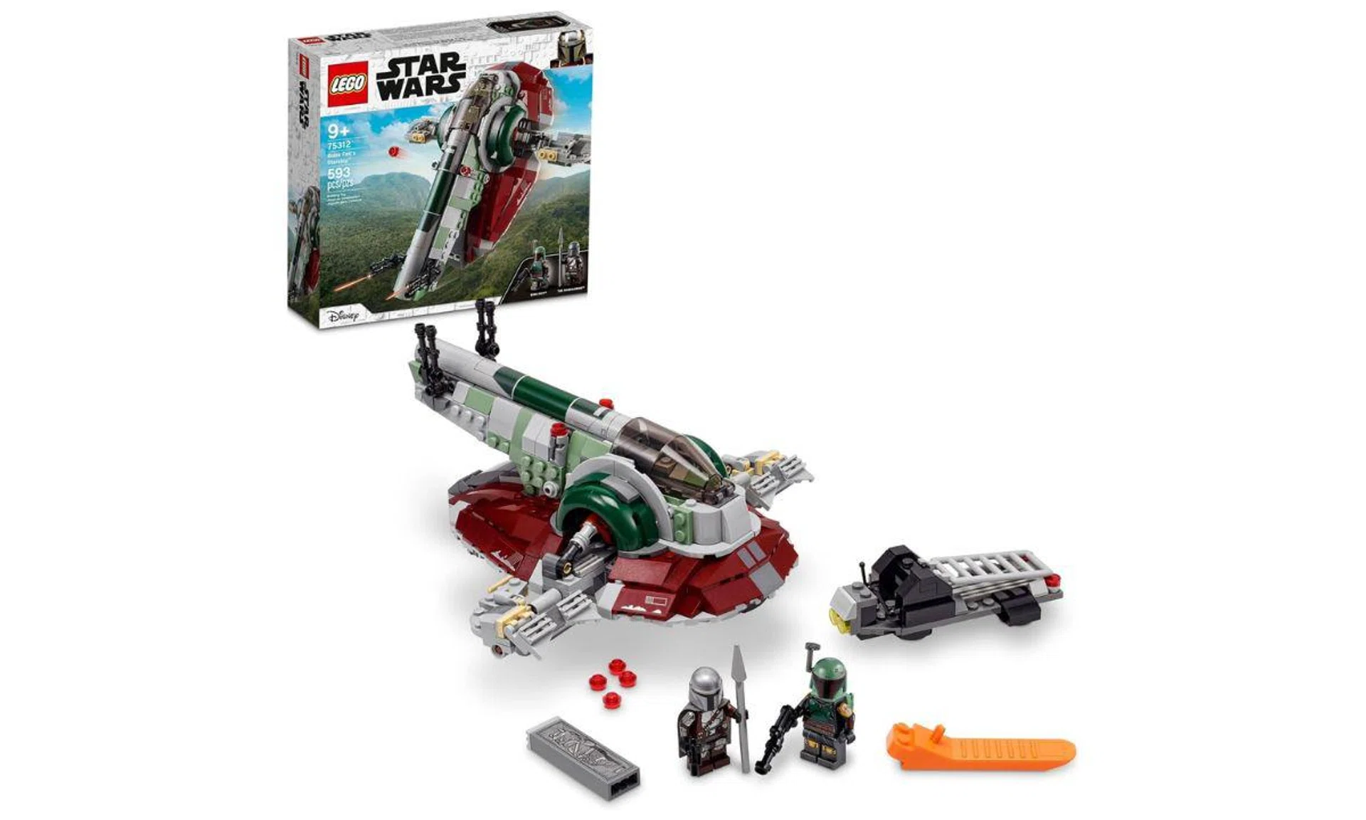 This one’s more of a modern classic. One of the coolest bounty hunter builds around, Boba Fett’s signature Firespray ship comes ready for action, complete with rotating wings, stud shooters, a carbonite storage compartment, and even a mini transporter to double as a display stand.