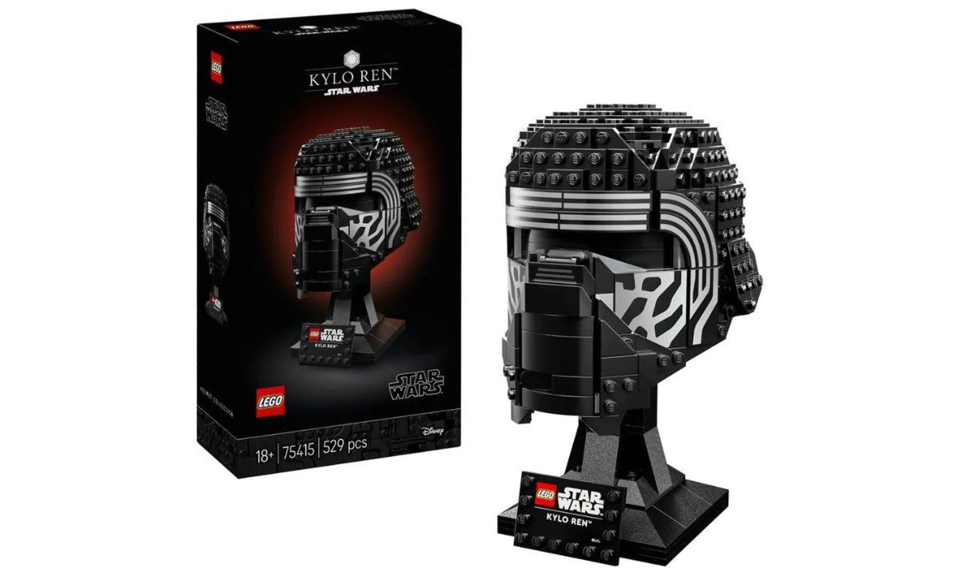 Kylo Ren’s cracked helmet gets the Lego treatment in this brooding display piece. Part of the collectible helmet series, this 10th-anniversary build marks The Force Awakens with sharp angles, printed silver details, and a sturdy stand.