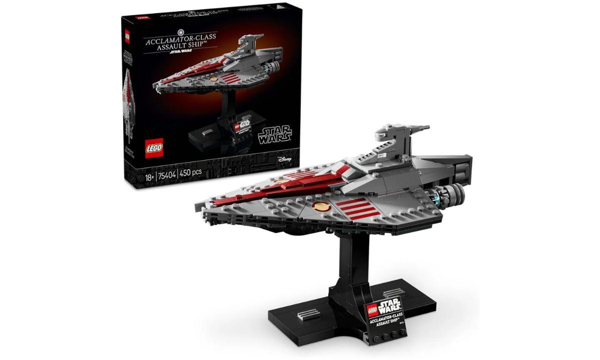 Sadly not everyone’s got the cash to splash on the UCS Venator. This Acclamator-Class Assault Ship offers a much more accessible way to represent the Republic fleet. Built in a similar mid-scale format, this display model recreates the wedge-shaped assault ship from Attack of the Clones, complete with clean lines, a nameplate, and a sturdy stand.