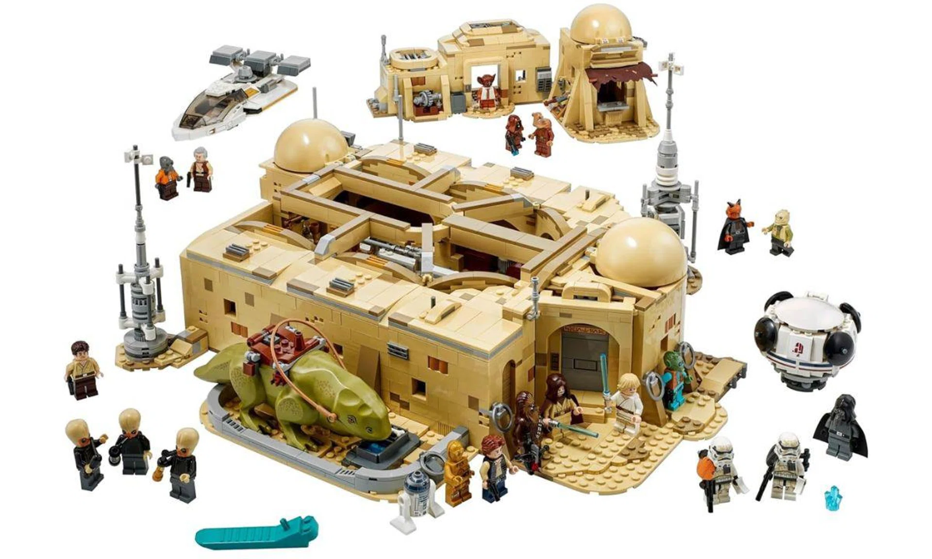 You’ll never find a more wretched hive of scum and villainy…or a better Star Wars display set. This massive Mos Eisley Cantina build captures the heart of A New Hope, with booth-filled interiors, a removable roof, side buildings, and more aliens than you can shake a blaster at.