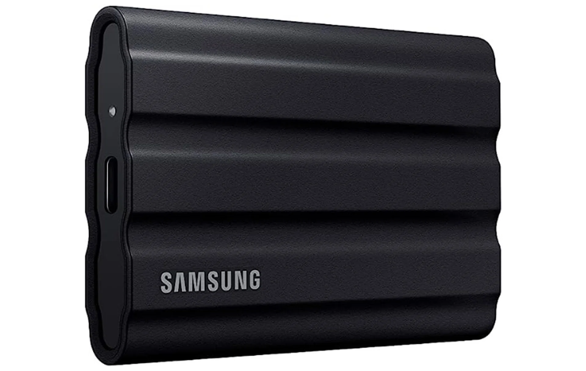 Experience lightning-fast data transfer and robust protection with Samsung's T7 Shield 1TB Portable SSD. It features a protective rubber exterior, is drop-resistant up to three metres, and is IP65-rated for dust and water resistance. Read more in our story