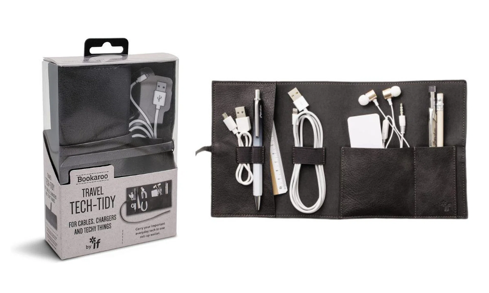 Nobody likes to untangle messy cables and wires. This compact roll-out case in a soft faux leather will keep all your bit and pieces organised neatly, and will fit easily into any carry-on.