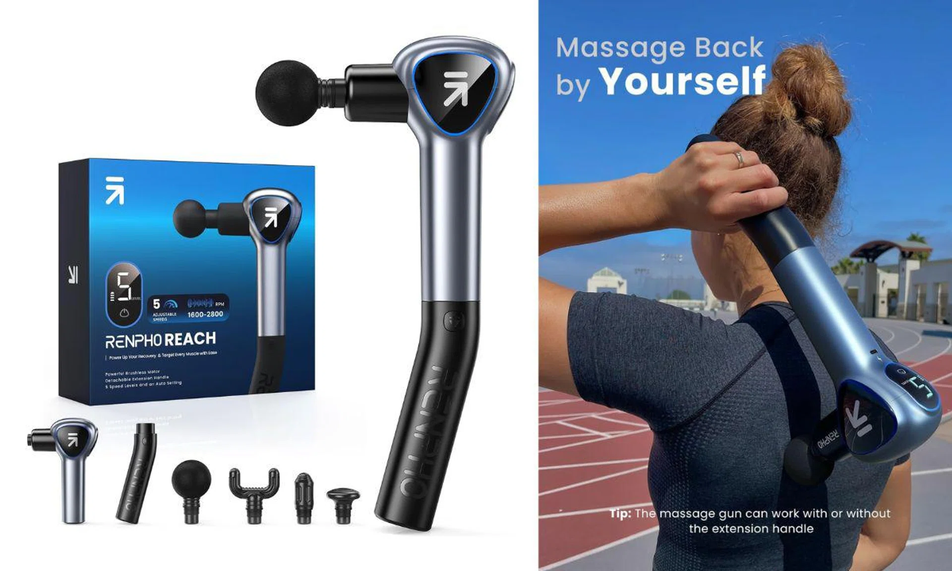 There’s nothing like a good deep tissue massage to aid fitness recovery. Hit that sweet spot with this massage gun that features a detachable extension handle that targets those tough-to-reach muscles aka your back.