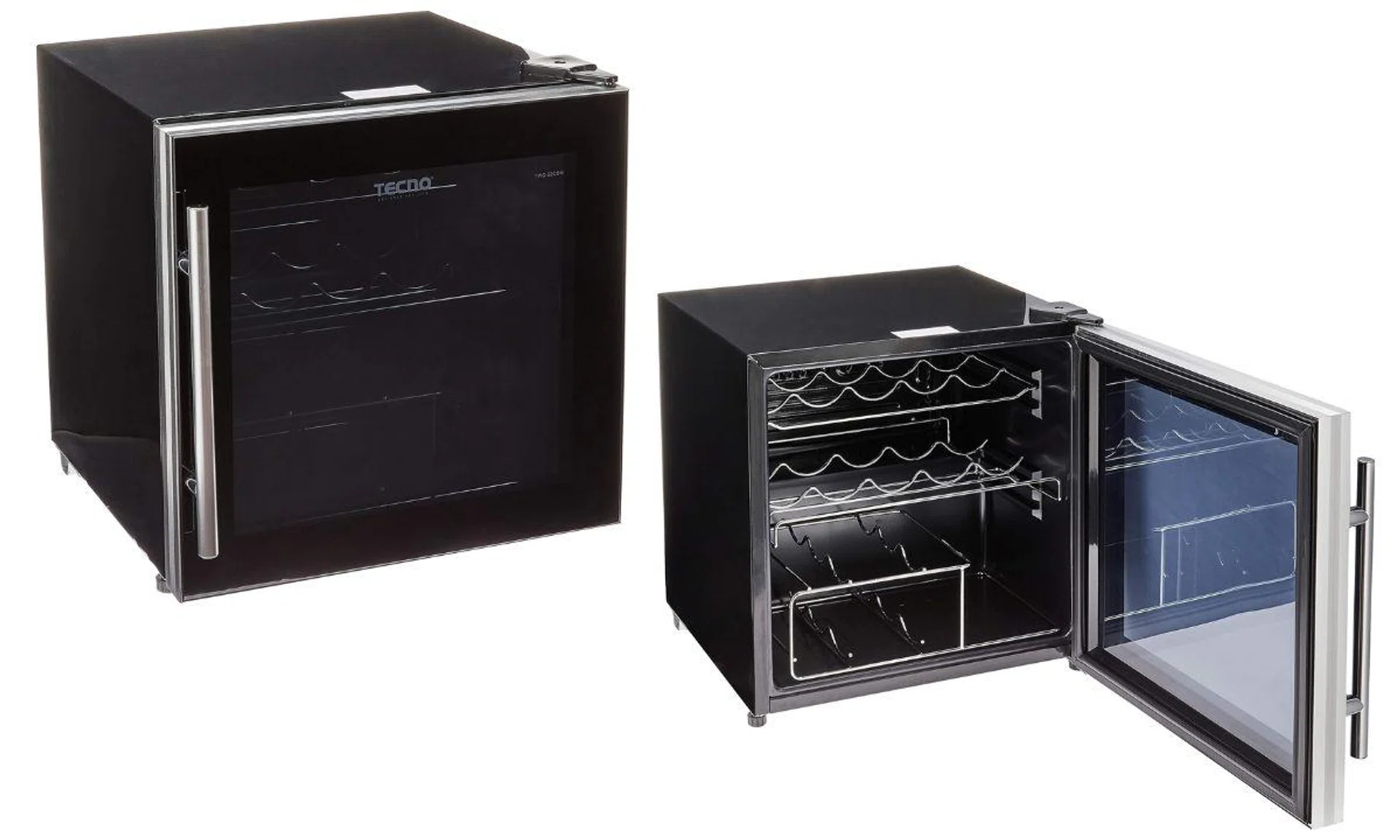 Need something to store your wine? This compact wine chiller holds up to 16 bottles, and comes with double tinted tempered glass doors, adjustable temperature settings and removable metal racks so you can arrange the bottles any way you want.