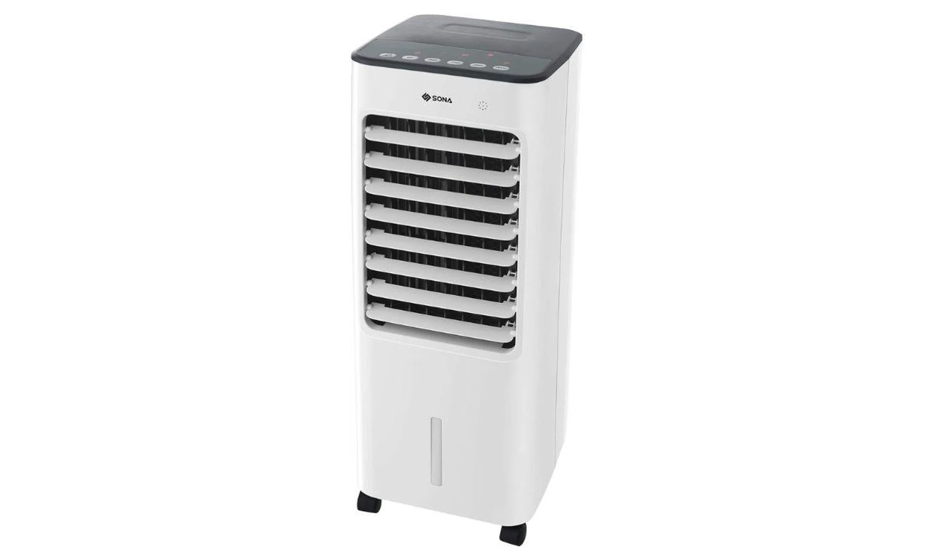 The Sona air cooler offers 3 fan speeds in different modes (Normal, Natural, Sleep). It’s got a removable water tank and comes with an ice pack to help cool the surrounding air down even further. You can also easily move it around with its universal wheels.