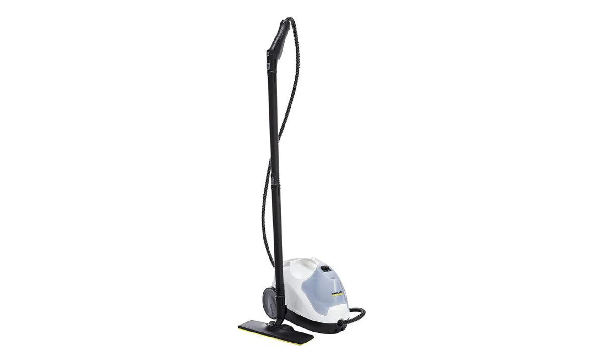 The Karcher steam cleaner is a multifunctional tool that eliminates 99.99% of common household bacteria from hard surfaces and is especially ideal for carpets. It is easy to use, with a child safety lock and an On/Off switch and comes with the EasyFix floor nozzle set, steam hose with trigger gun, and carpet glider for use on various surfaces.