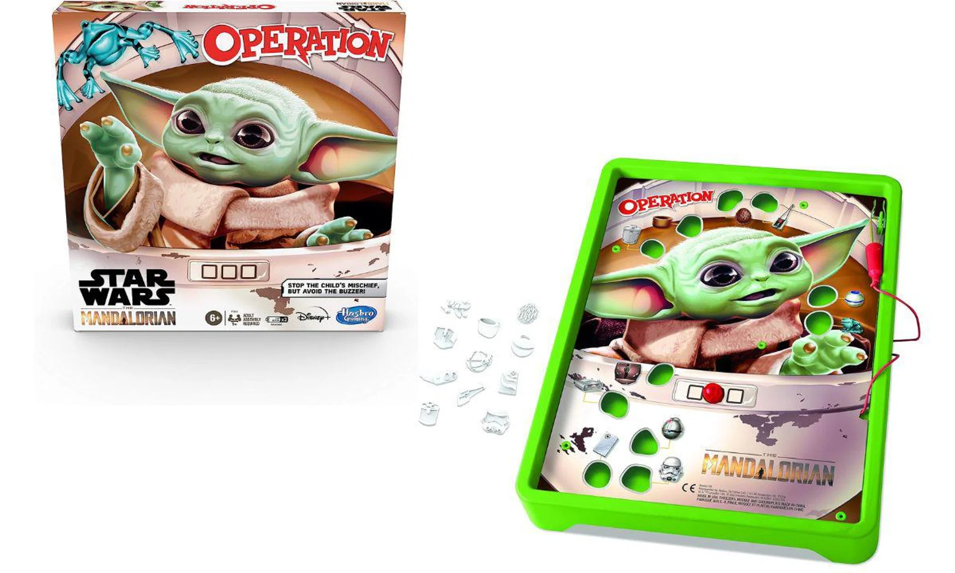 This fun twist on the classic Operation game is inspired by the hit TV series. Players use tweezers to retrieve items ‘Baby Yoda’ snatched, like a frog and a cup of broth, without setting off the buzzer. Suitable for kids aged 6 and over.