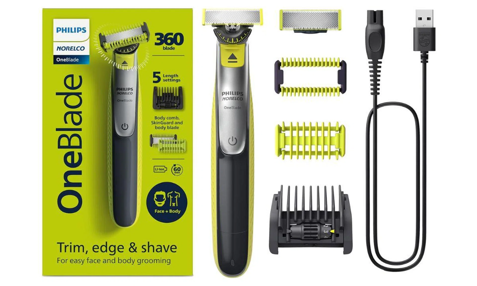 Philips Norelco OneBlade 360 Face + Body Hybrid Electric Trimmer and Shaver