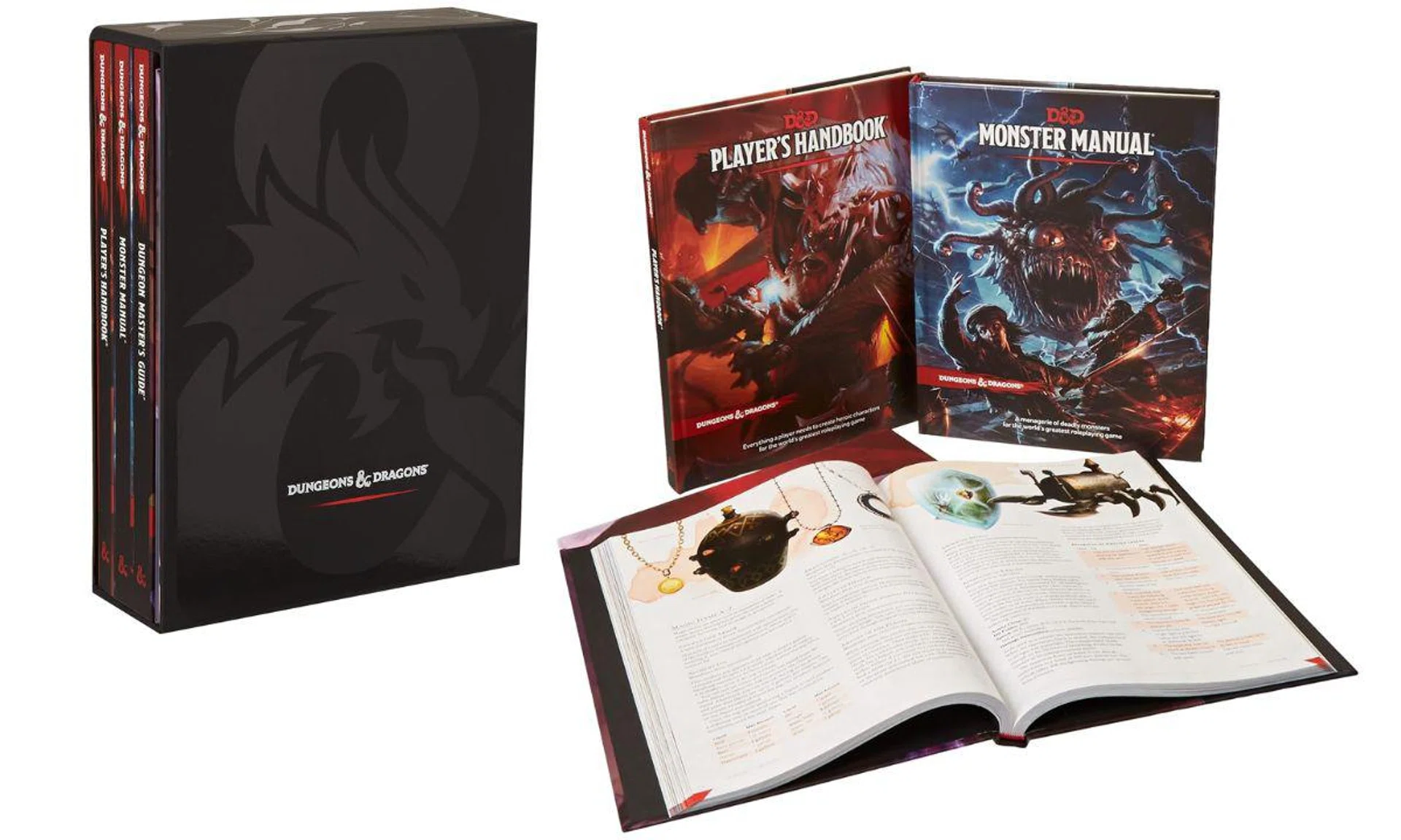 This special edition set, wrapped in a stylish slipcase, includes foil-covered Player's Handbook, Dungeon Master’s Guide, Monster Manual, and an exclusive DM screen.