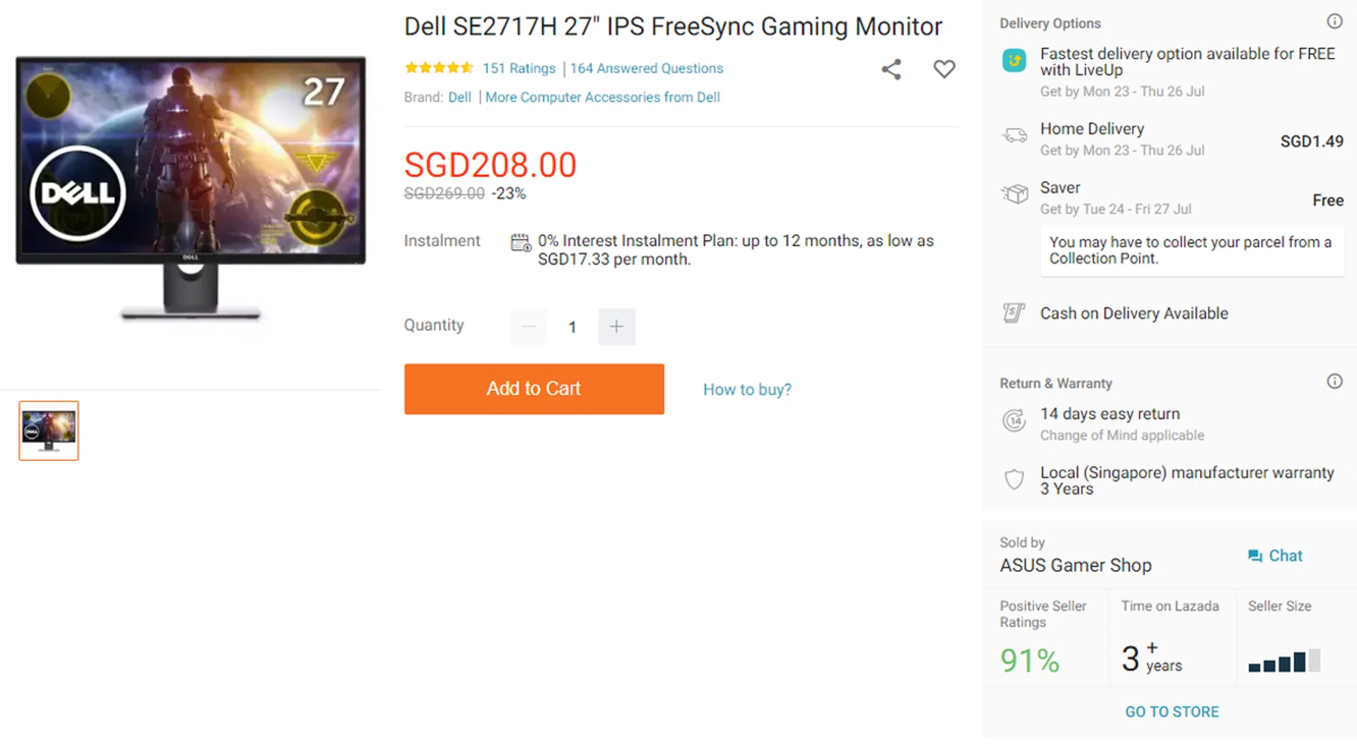 This monitor usually retails for S$269, but you can get it on Lazada for just S$208.