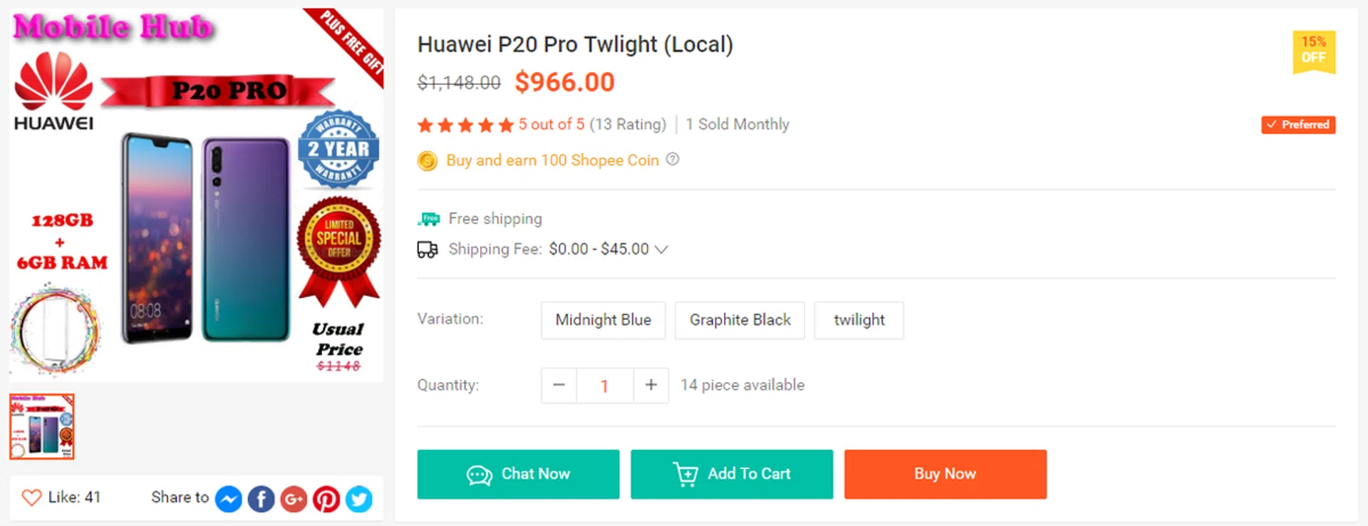 The phone normally retails for S$1,148, but you can get it on Shopee right now for S$966.