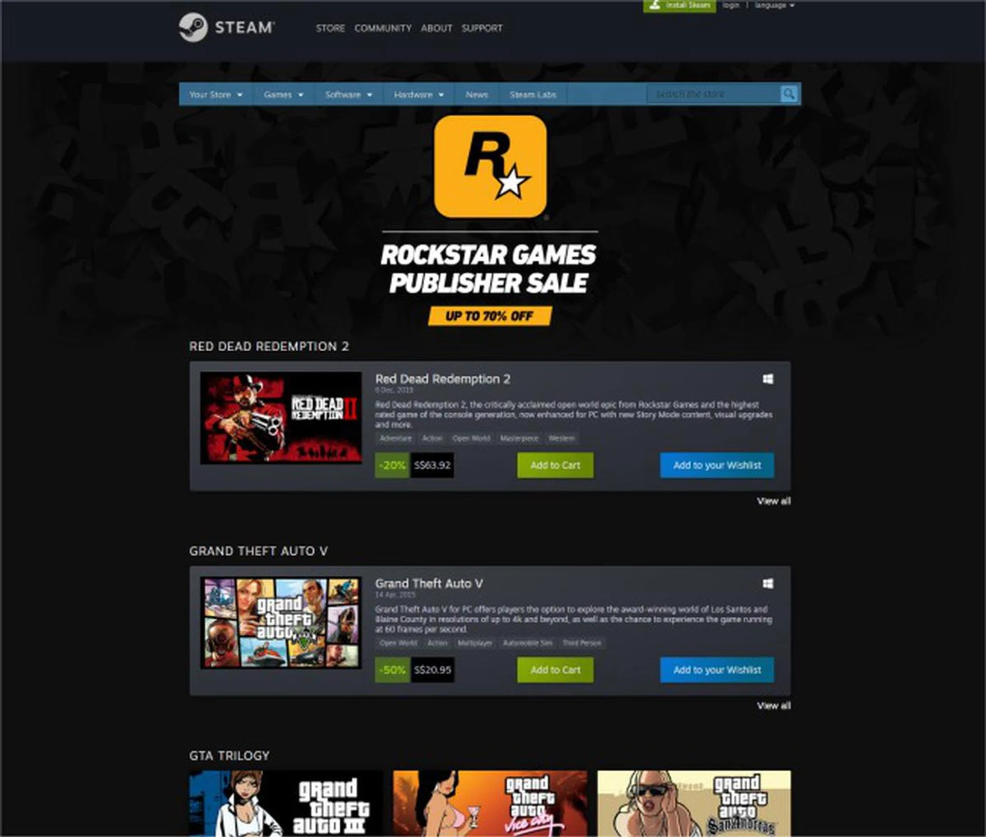 Enjoy up to 70% off game bundles from popular studio Rockstar Games on Steam until February 7.