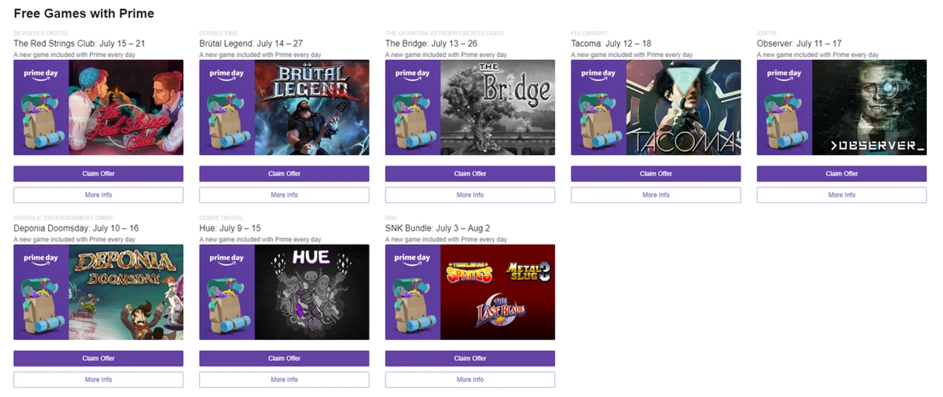 If you have an Amazon Prime subscription, you also have a Twitch Prime sub. And for the entire month of July, Twitch is giving away free games! Just log into your Twitch account to claim them.