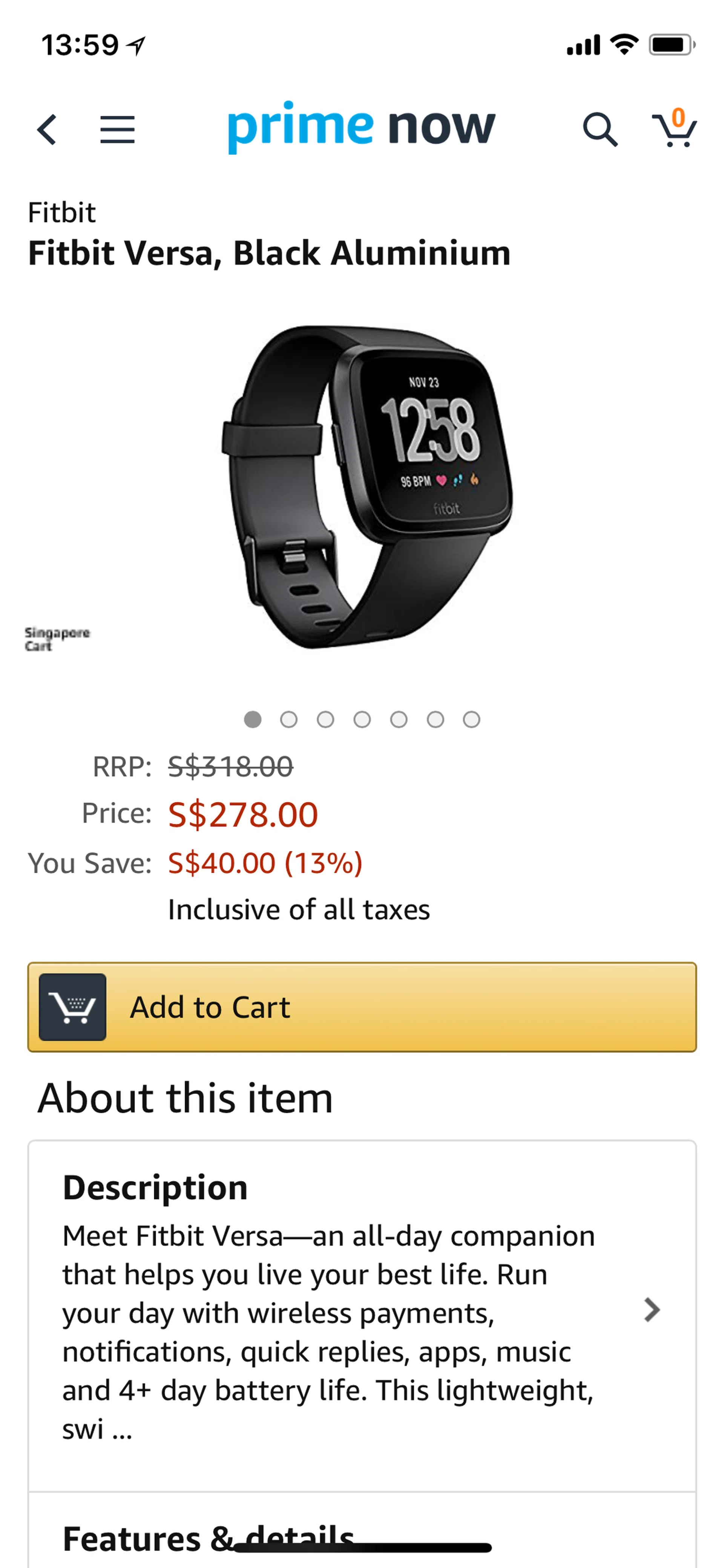 The Fitbit Versa normally costs S$318, but you can get it today for just S$278!