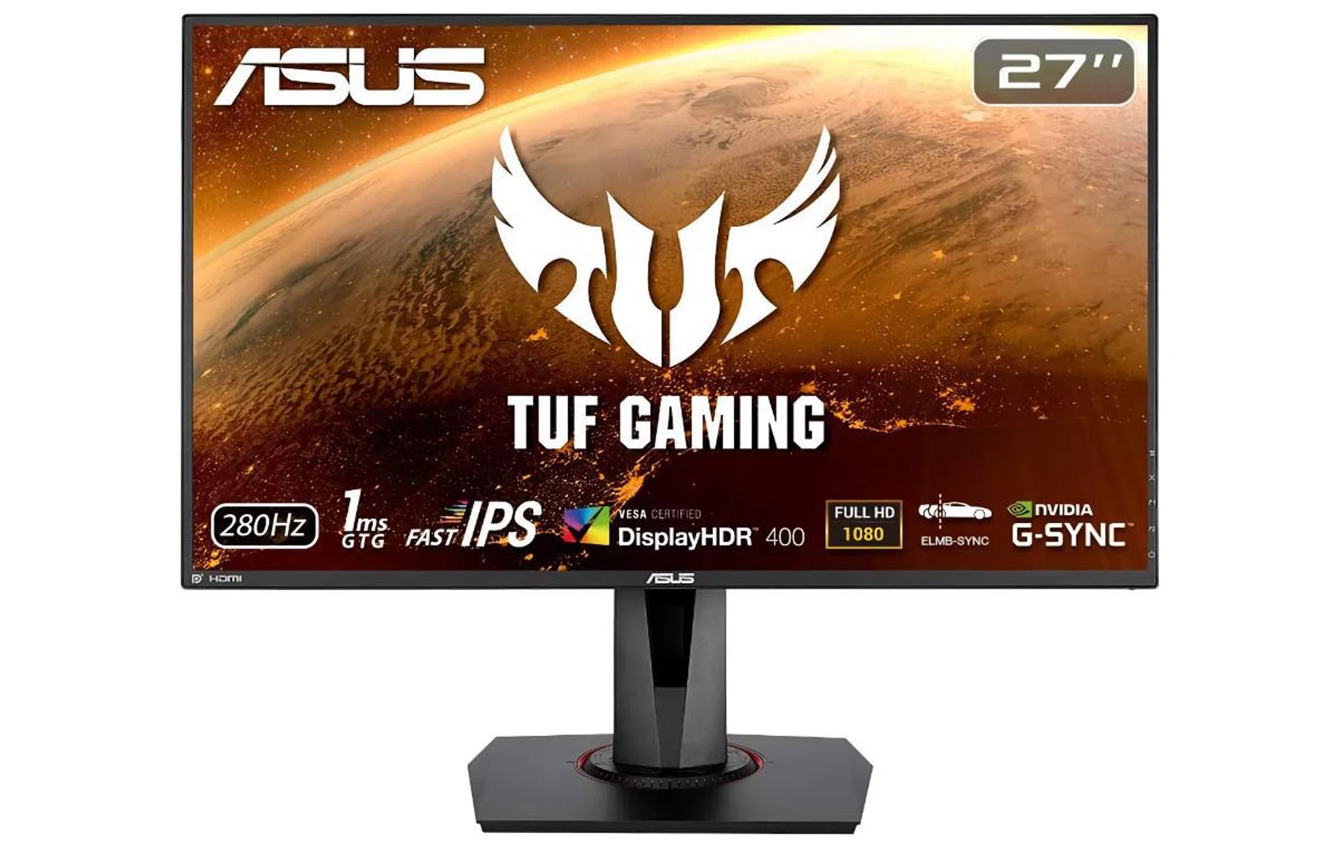 The ASUS TUF Gaming VG279QM HDR Gaming Monitor is a 27-inch IPS FHD display with a 1ms response time and a speedy 280Hz refresh rate. It also comes with variable refresh rate (VRR) support by default and is certified G-SYNC Compatible.