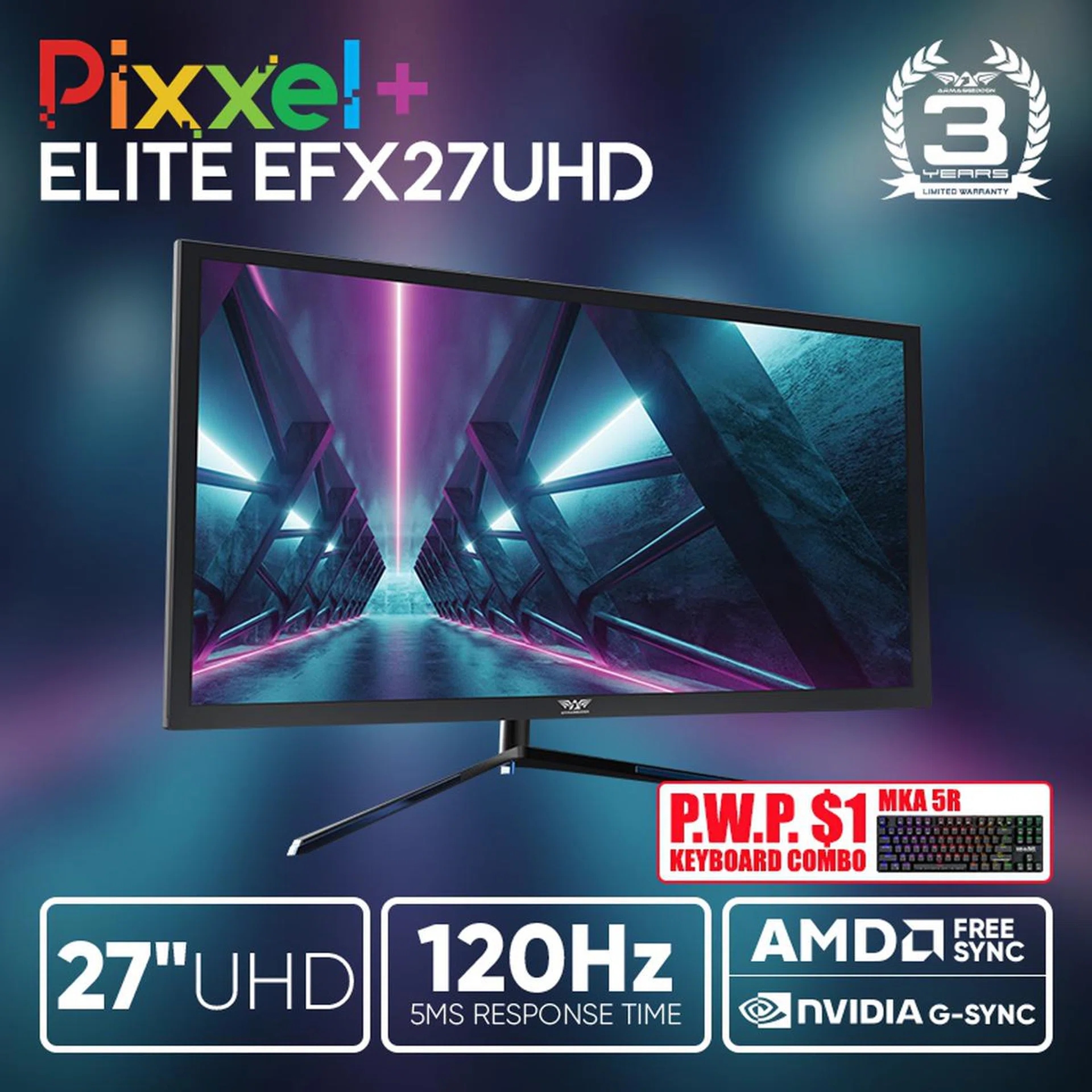 This generous bundle from Armaggeddon comprises a 4K Pixxel+ 27” UHD SWITX gaming monitor that’s NVIDIA G-Sync Compatible and also supports AMD FreeSync technology. Add a mechanical keyboard for just S$1; choose either the MKA 5R or 8C keyboard. Last of all, pick a gaming mouse for free; take your pick from the Raven III, Falcon III, or Starship III. A free AS33 mouse mat completes this deal, and the bundle only costs S$488! The actual value of this bundle is S$649.