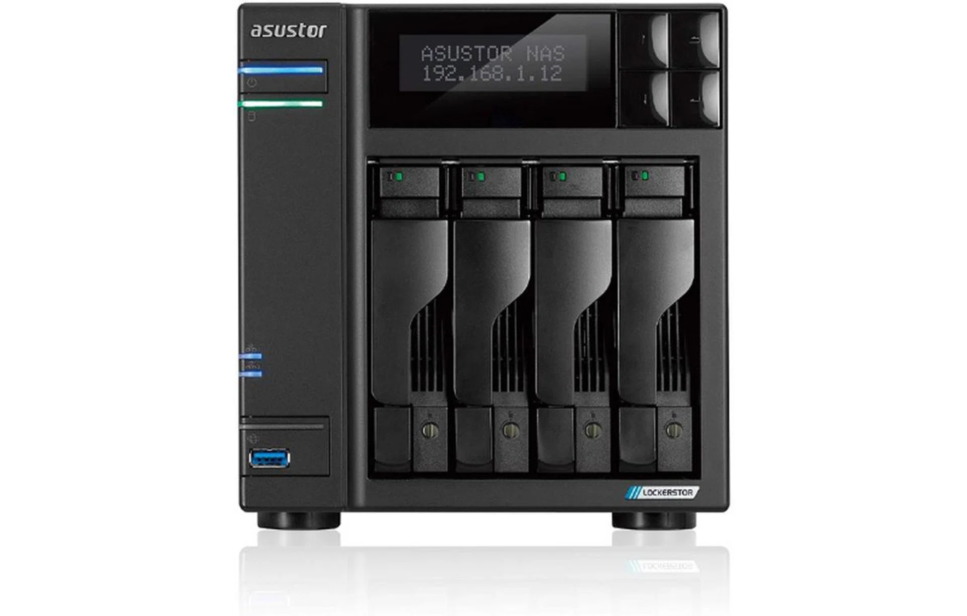 The ASUStor AS6604T 4-Bay NAS is powered by an Intel Celeron 2GHz Quad-Core Processor and 4GB of RAM. Coming with a three-year warranty, it can support up to 72TB of storage. Its Windows sequential read and write speeds are up to 591MB/s and 590MB/s.