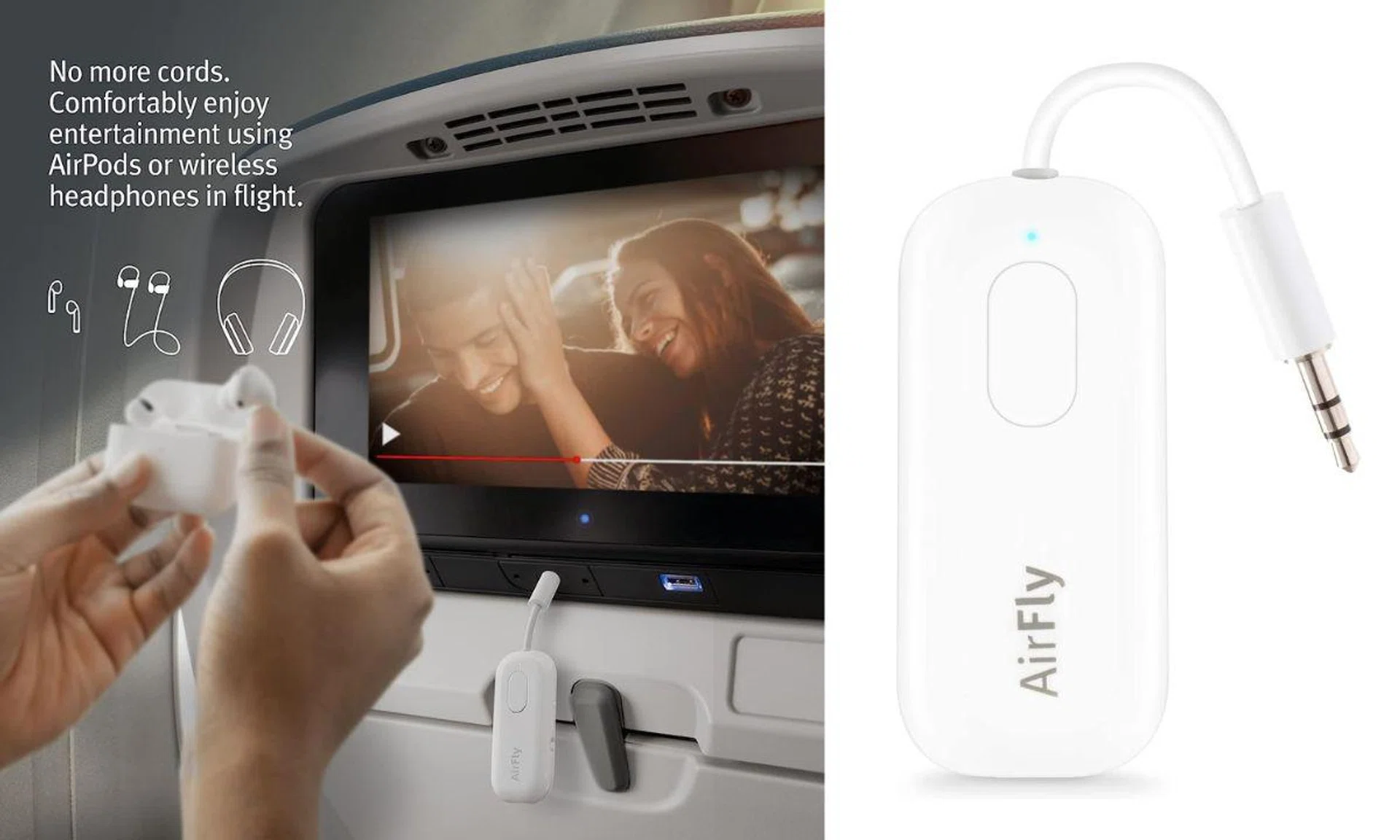 Designed to connect up to 2 pairs of AirPods or wireless headphones to any 3.5mm audio jack via Bluetooth, you can enjoy in-flight entertainment without sacrificing sound quality. Plus, it's not just about going wireless - the AirFly Pro packs a hefty battery life of over 16 hours. As one reviewer said, “Long distance travel will never be the same”.