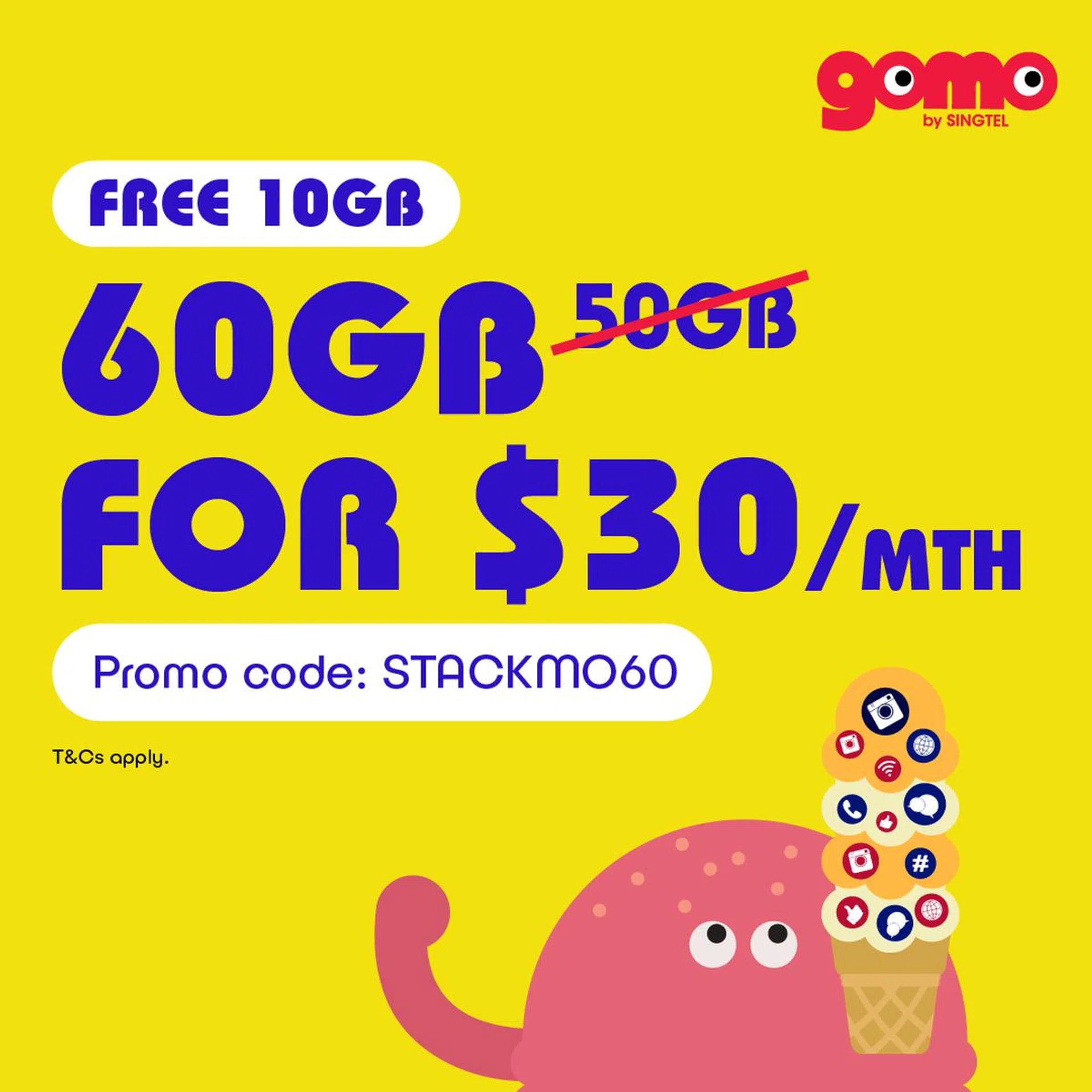 However, should a new user sign up by 16 October 2020 and use the STACKMO60 promo code, they can enjoy an additional 10GB for 10 months. That's 60GB a month, which is very sufficient for all the cat videos you could possibly watch while on the go.