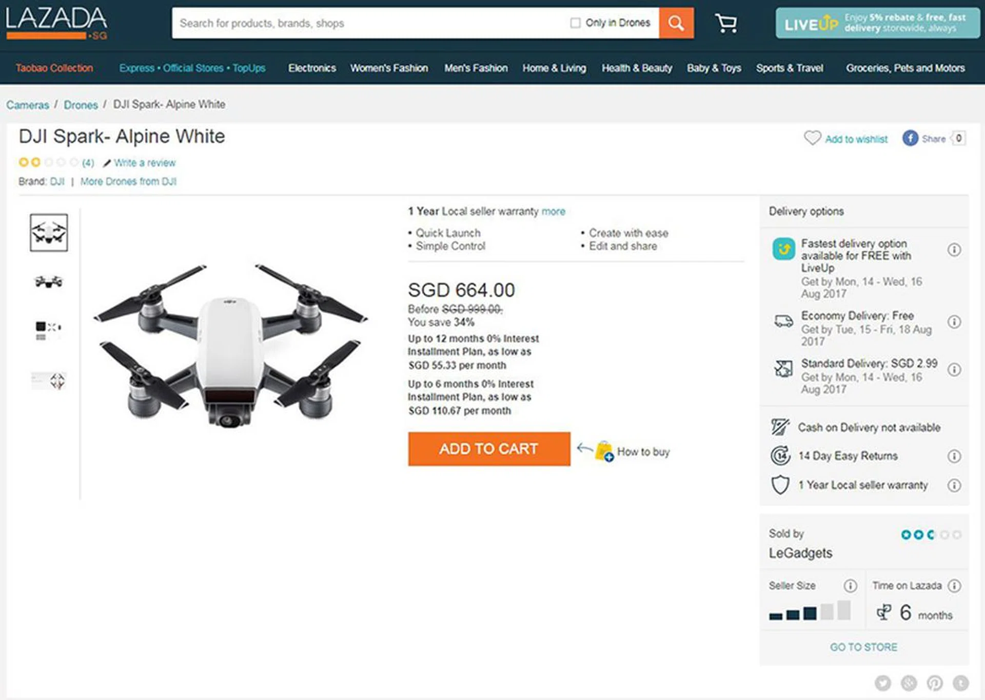 Lazada has DJI’s latest drone – the Spark available in Alpine White for just $664.00, down 34% from their usual price of $999.00. That’s a great price for this mini drone given it has many of the features from the more expensive DJI Mavic, like ActiveTrack and TapFly. It also has gesture controls, so you can get selfies just by making a shape with your fingers. No physical controls needed! Here’s a video to tell you more about the DJI Spark, after which you can head over to Lazada to pick it up.