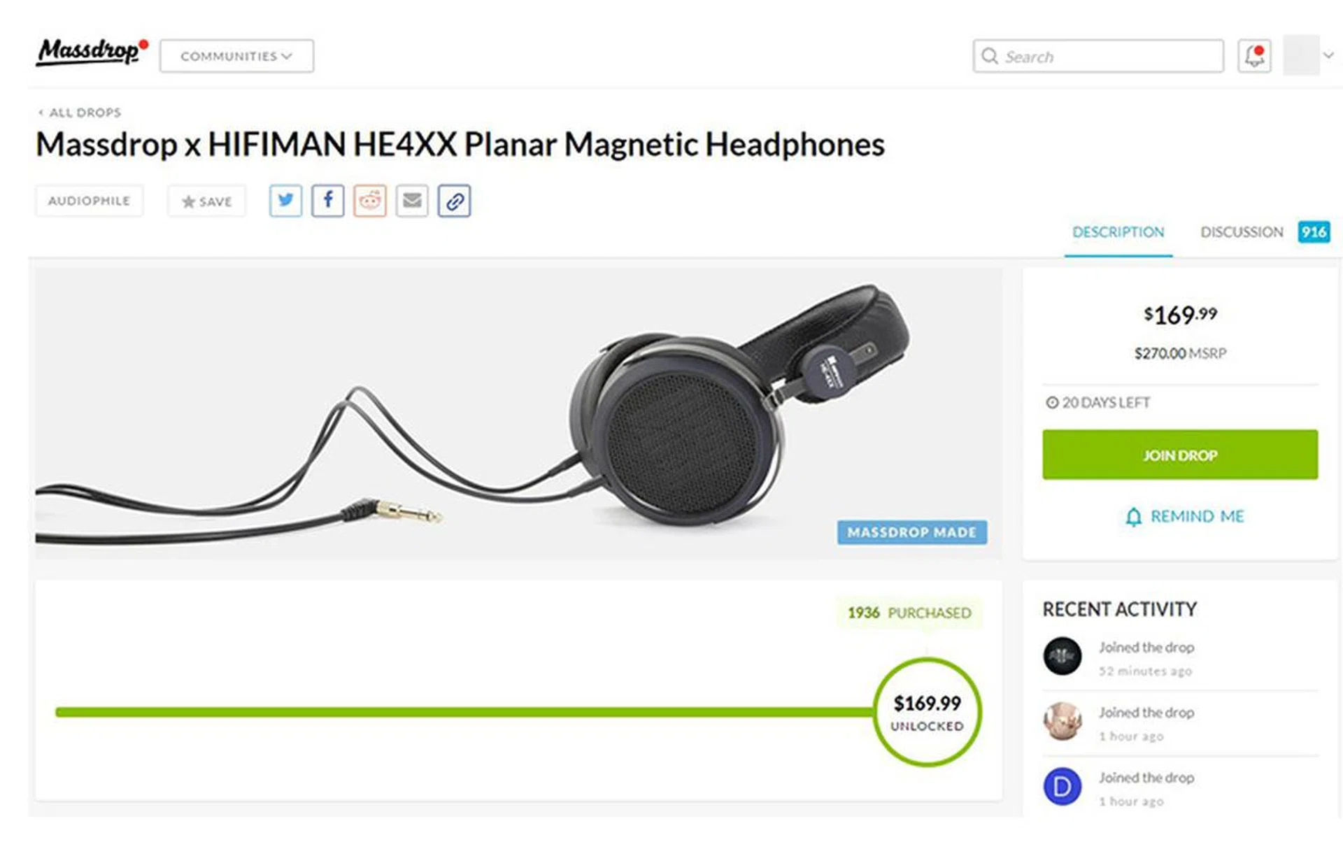 Massdrop x HIFIMAN HE4XX Planar Magnetic Headphones