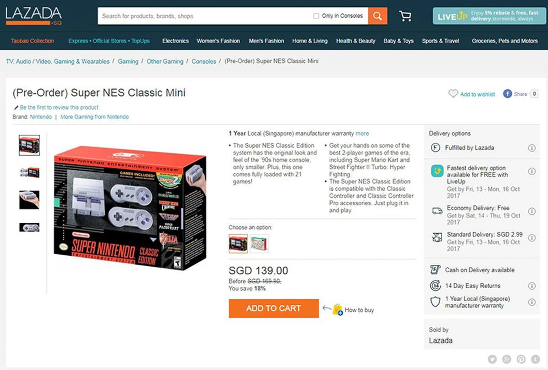 If you’re a child of the eighties, you’ll remember how great the Super NES was in its day. Well, now you can relive your youth with the the Super NES Classic Mini. Smaller than the original but with the same look and controllers, this comes preloaded with 21 games so you and a friend can get at it straight away. Pre-order your set now from Lazada for just $139.00, 18% off the usual price of $169.90. As with all purchases from Lazada, we’d recommend heading there via Shopback’s links to get your cashback.