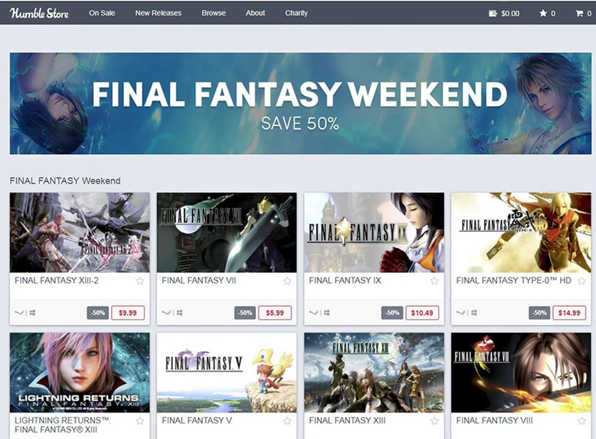 Also on Humble Bundle, is a special Final Fantasy sale just for this weekend! A collection of eight titles are up for selection –Final Fantasy V, Final Fantasy VII, Final Fantasy VIII, Final Fantasy IX, Final Fantasy Type-0 HD, Final Fantasy XIII, Final Fantasy XIII -2 and Lightning Returns Final Fantasy XIII. All are great RPG titles with fantastic graphics, an excellent sound track, and an even better story line, promising hours of gaming fun. Prices range from US$5.99 to US$14.99, (50% off the usual,)so go grab your chosen title and start gaming!