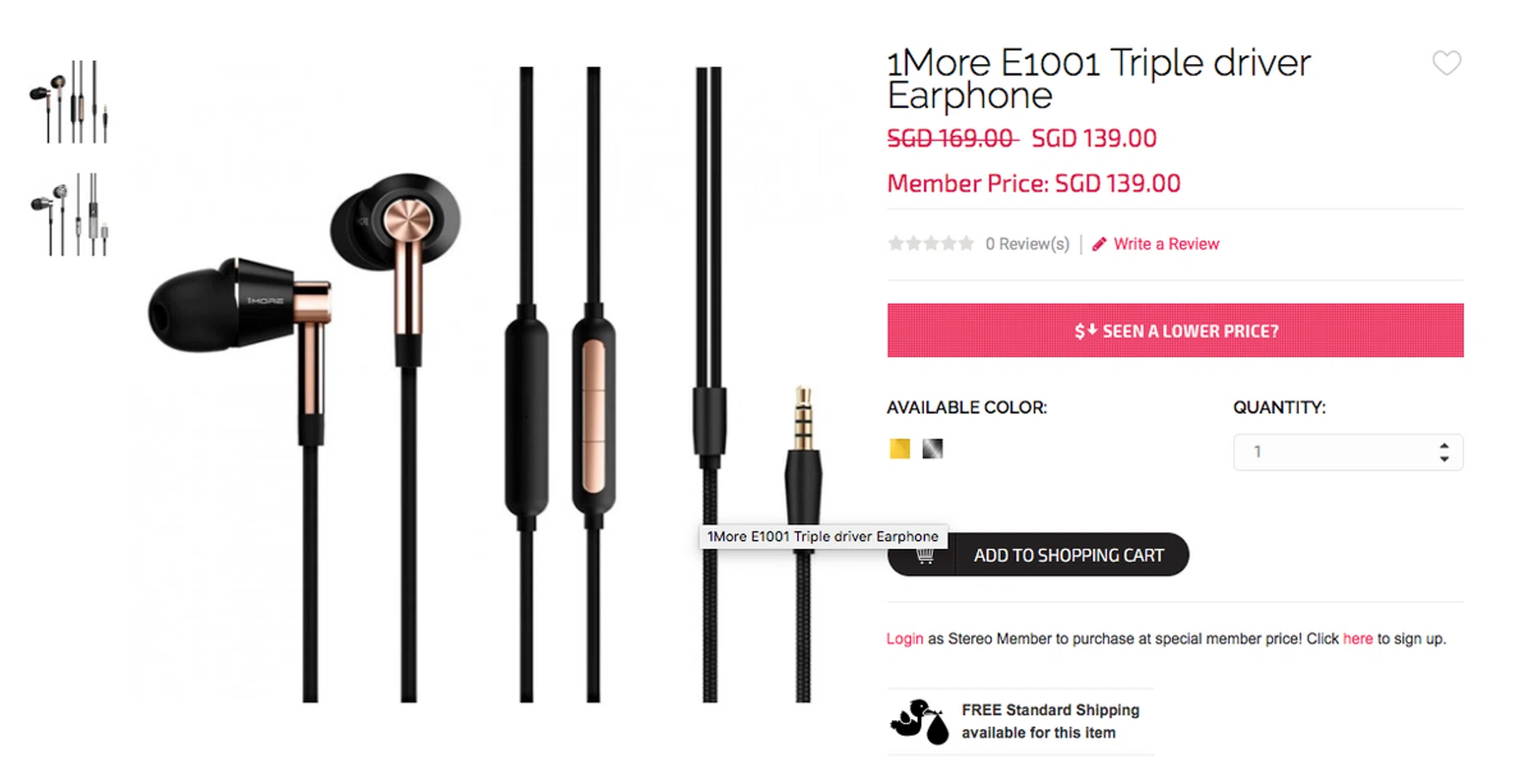 1More's Triple-driver in-ear headphones are one of the most affordable multiple-driver in-ear headphones that you can find. It has good details in the mids and highs, and it comes with loads of accessories. Simply as register as a member at Stereo to purchase the 1More Triple-driver in-ear headphones at S$139. Registration is simple and free.
