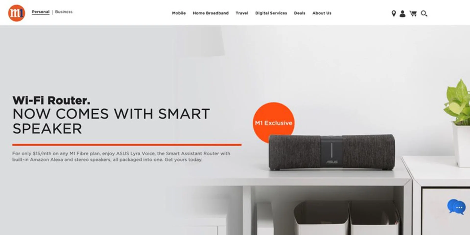 The M1 1Gbps plan costs S$39.90 a month for 24 months and comes with 4G mobile broadband dongle for connectivity on the go, a fixed voice line, and a waiver of the Optical Network Terminal (ONT) activation fee. As an online exclusive, subscribers will also enjoy free delivery which is a savings of S$20 and receive a free Belkin WeMo Switch worth S$35. Subscribers can also pay S$15 a month extra and receive an ASUS Lyra Voice.