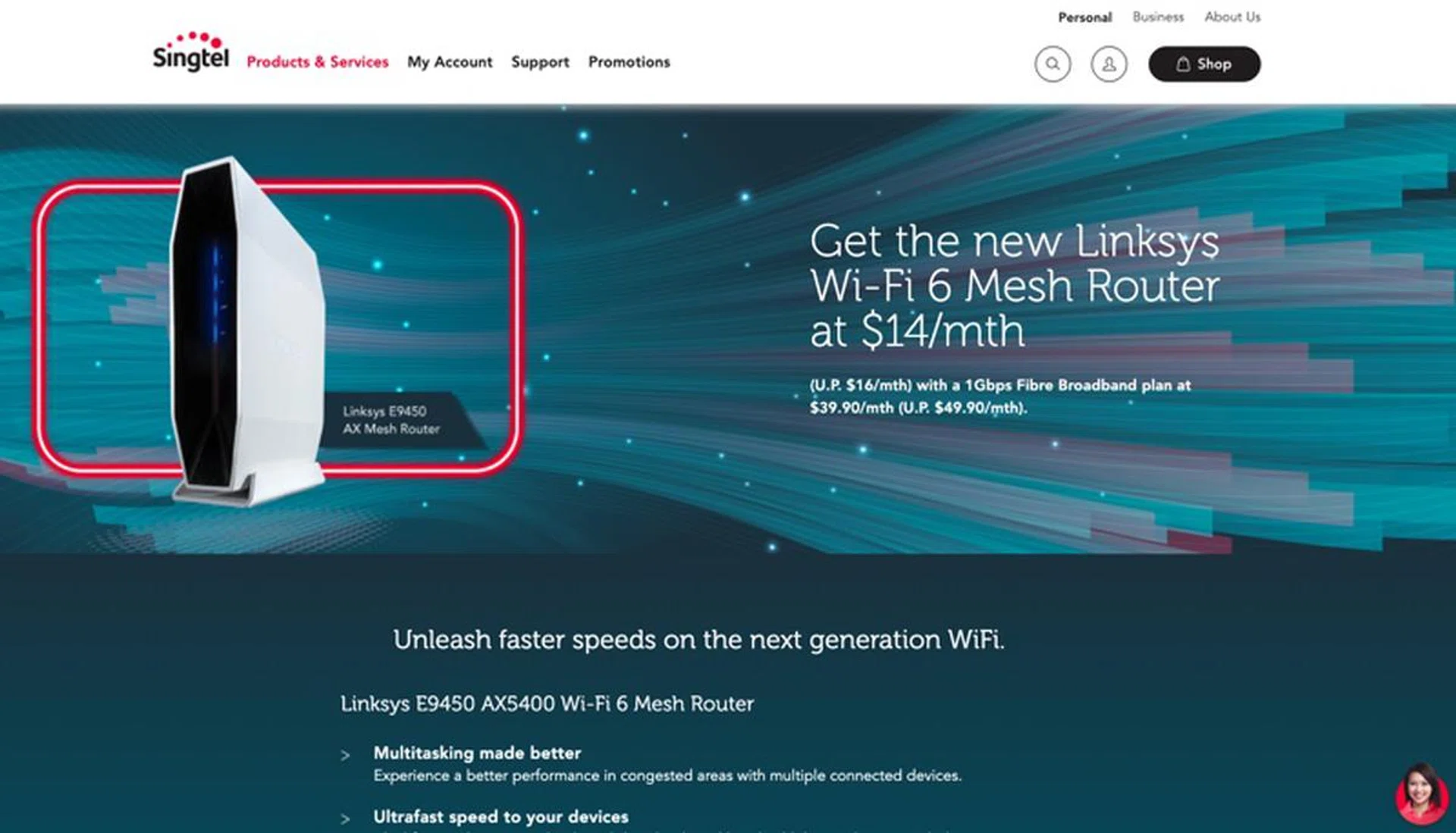 Plus, for existing or new subscribers who sign up now, for Singtel’s 1Gbps Fibre Broadband plan at S$39.90 a month, they can also receive the latest Linksys E9450 AX Wi-Fi 6 Mesh Router at S$14 a month (U.P. S$16 a month). This new router can support up to 40 devices and provide coverage up to 2,500 sq ft and is ideal for simultaneous uploads and downloads and bandwidth-heavy devices, including gaming laptops and 4K TVs.