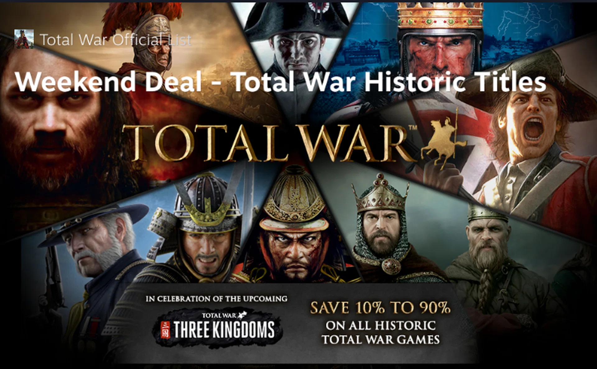 Steam has some fantastic deals on games in the Total War series. Total War: Shogun 2, a personal favorite of mine, is going for just $7.25. Rome: But if samurais and ninjas aren’t your thing, Rome: Total War - Collection is going for just $5.25. For something newer, Total War Saga: Thrones of Britannia is going for $36.