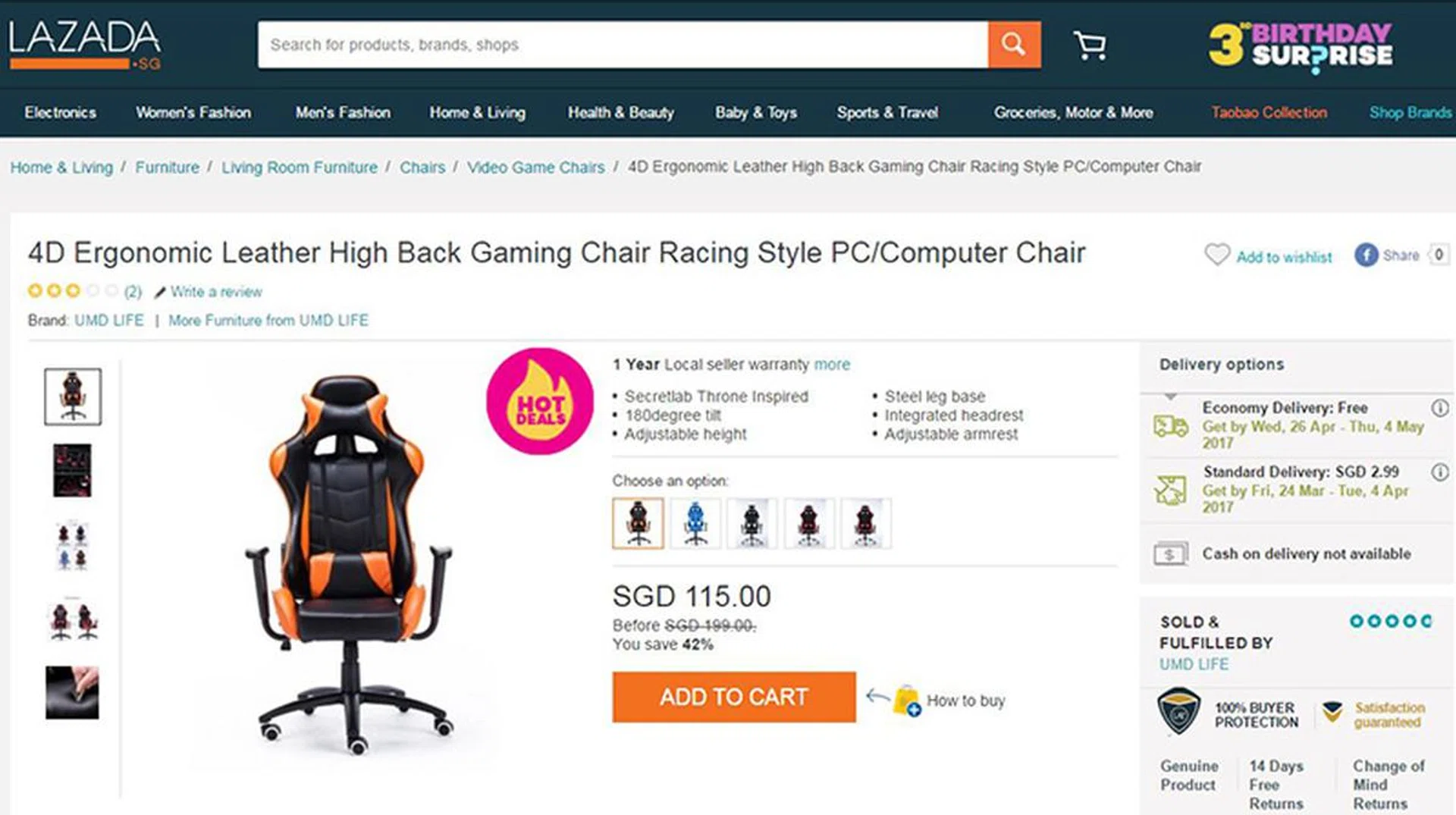 Never mind the incredibly long name, this Gaming Chair features high density cold cure foam, making it extremely comfortable, perfect for hours of extended gaming. It also comes with an integrated headrest and an adjustable lumbar support cushion, so you can easily maintain good posture while at your desk. This is now going for just $115, down from the usual price of $199. So go grab it from Lazada now!