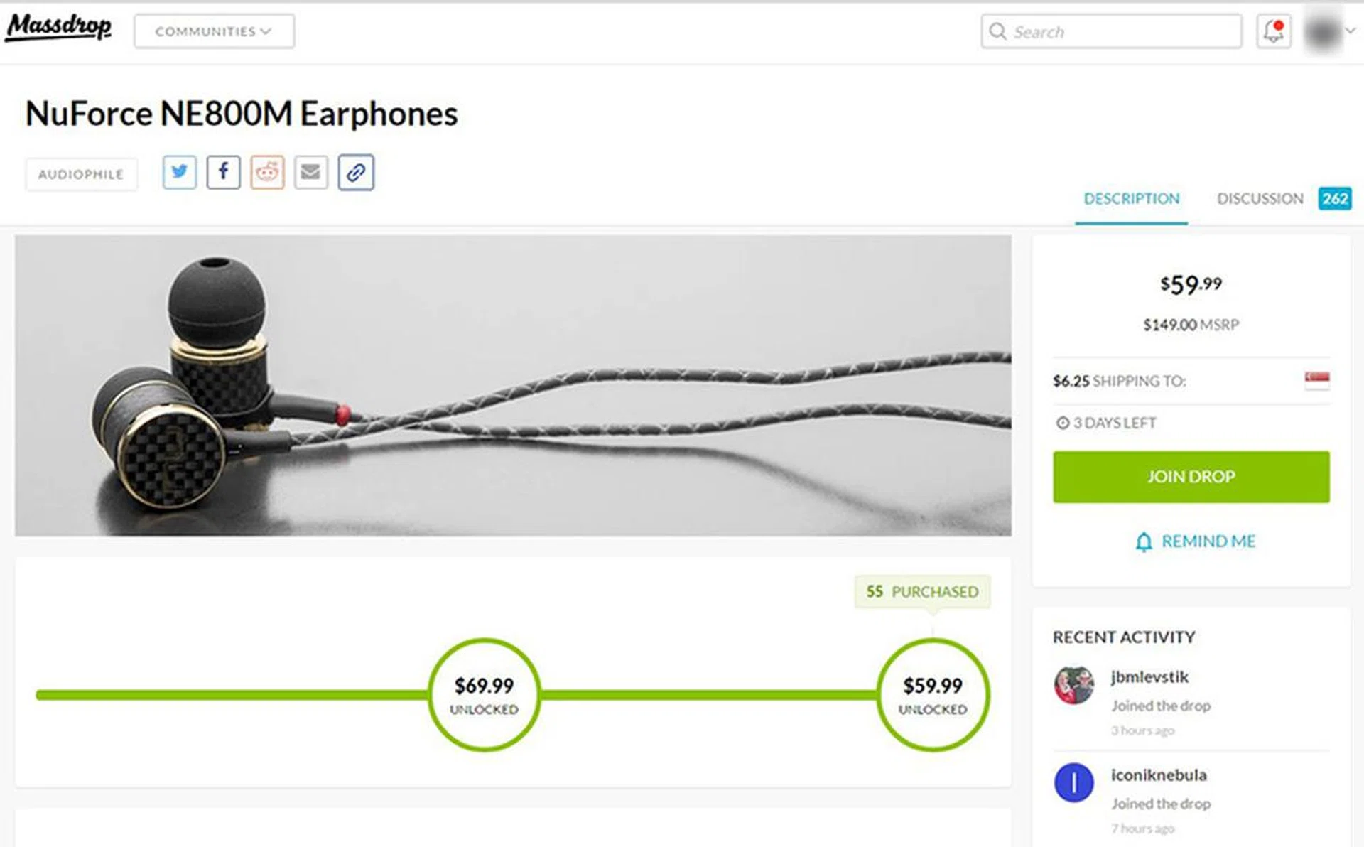 Something for the audiophiles – Massdrop has the NuForce NE800M in-ear headphones for just US$59.99, down from the usual of US$149.00. Add just US$6.25 for shipping to Singapore, and it’s easy to see how this is a good deal for these in-ear headphones that 8.6mm titanium coated dynamic drivers and boast a frequency response of 20Hz – 20kHz. Only 3 days left for this drop, so head there to join in now!