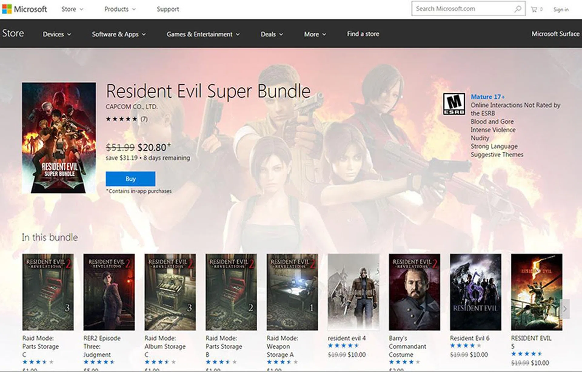 Xbox One Gamers, here’s an offer from Microsoft for a huge collection of Resident Evil titles. Get Resident Evil HD Remaster, Resident Evil 0 HD Remaster, Resident Evil 4, Resident Evil 5 Gold Edition, Resident Evil 6 and Resident Evil Revelations 2 Deluxe Edition for just US$20.80, down from the usual price of US$51.99. Only 8 days remaining for this offer, so head over to this page to pick it up now!