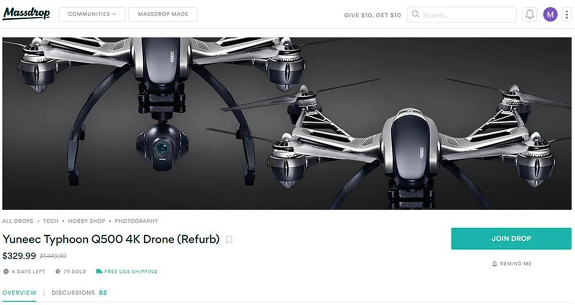 Drones get you footage from otherwise impossible angles, and the Yuneec Typhoon Q500 pictured here does so with a detachable 4K camera paired with a 3-axis gimbal stabilizer. Follow Me mode automatically tracks your movement as you go, and Watch Me mode keeps the camera on your target so the drone keeps it in frame at your desired angle. Massdrop has a great deal on a refurbished model - get it now for US$329.99 instead of their usual price of US$1,449.99!