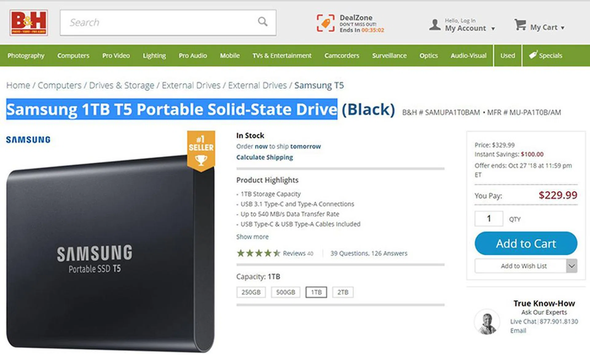 Samsung 1TB T5 Portable Solid State Drive