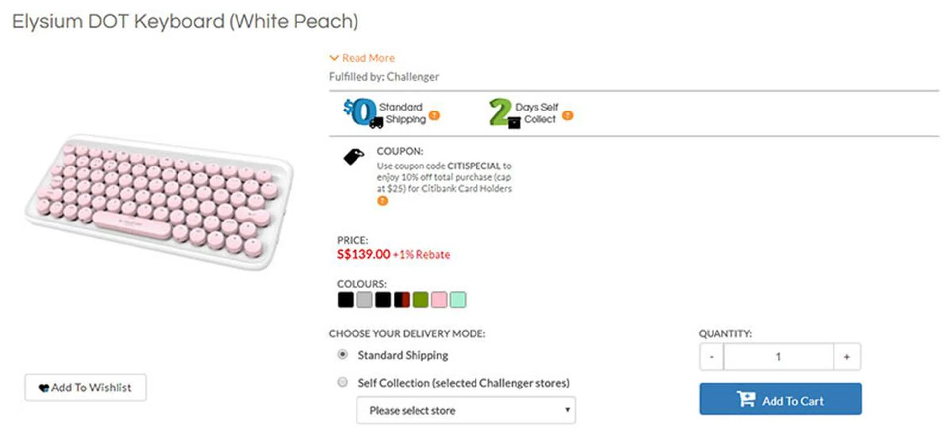 It supports both wired and Bluetooth operation and uses Gateron Blue switches in a 78-key layout, but you’ll have to get used to the unconventional round keys. It can be yours for S$139 (U.P. S$179) on Hachi.tech, and is available in seven different colors.