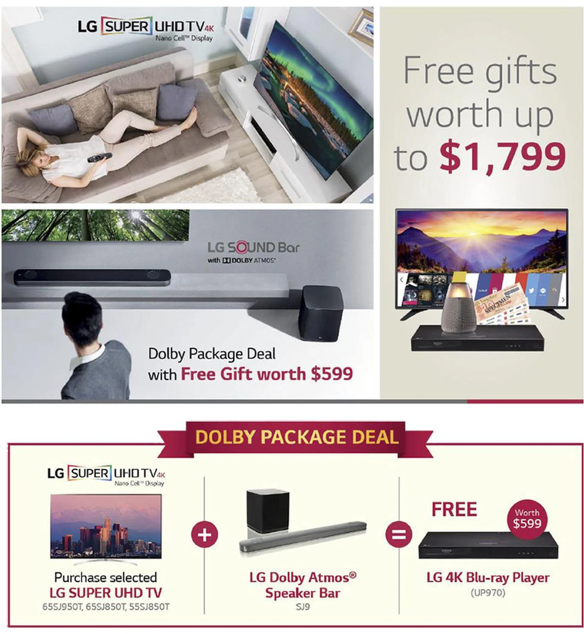 Finally, this isn’t quite an online deal, but it's too good not to mention. If you’re looking for a new TV or sound bar for your home, you’ll be pleased to know that the LG Red Fair is on once more. From now till 15 Feb 2018, purchase one of the LG 65SJ950T, LG 65SJ850T, or LG 55SJ850T and the LG SJ9, and you’ll get a LG UP970 4K Blu-ray player worth S$599 thrown in for free! There’s a whole host of other deals like free TVs with Choice vouchers too, so do head down to your nearest authorized LG retailer to find out more.
