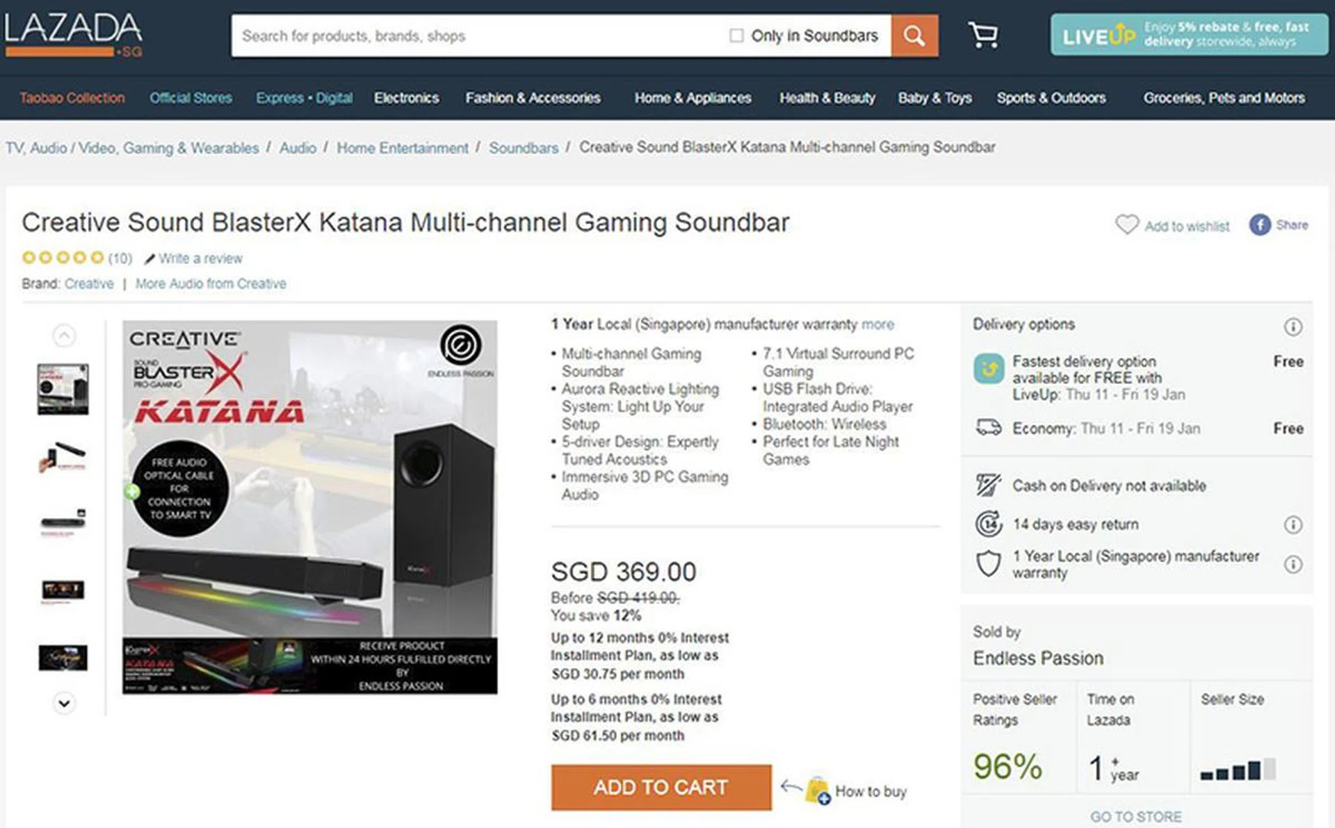 Stop using the default speakers from your monitor and grab Creative's Sound BlasterX Katana sound bar from Lazada now. It’s a sound bar that offers 7.1-channel Virtual Surround PC gaming thanks to its 5-driver design which has every driver individually chambered and powered by a DSP-controlled amplifier for precision audio. It’s going for just S$369.00, down about S$50 from its usual price of S$412.00. And, you’ll get cashback by using Shopback’s links too!